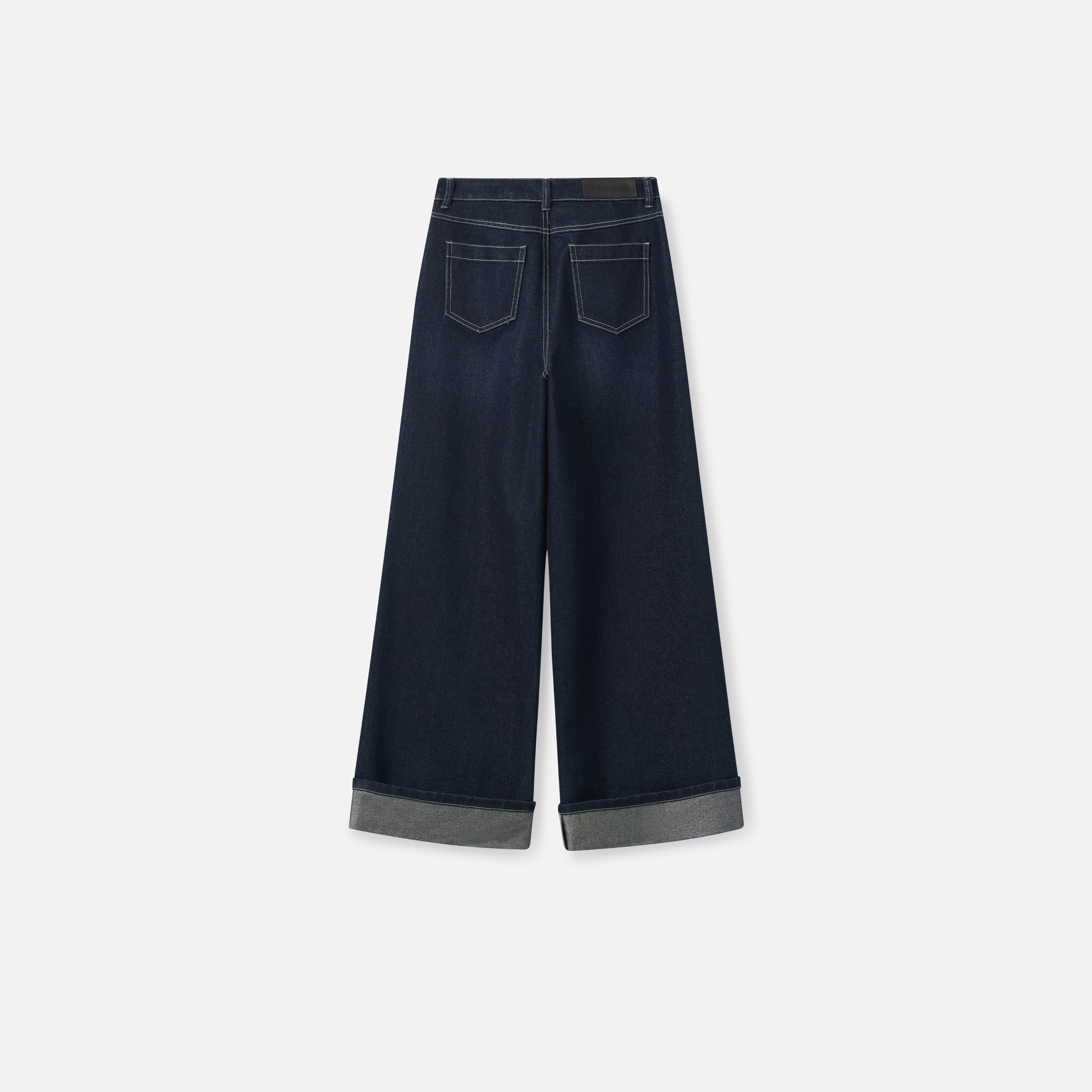播商场同款深蓝色通勤阔腿牛仔裤女冬季新款宽松长裤BDS4KD3664