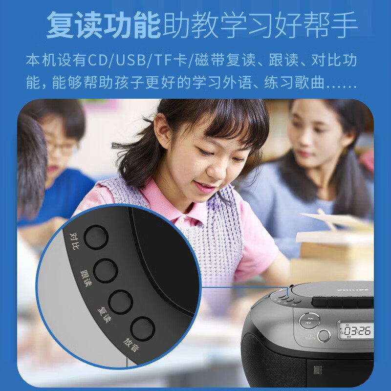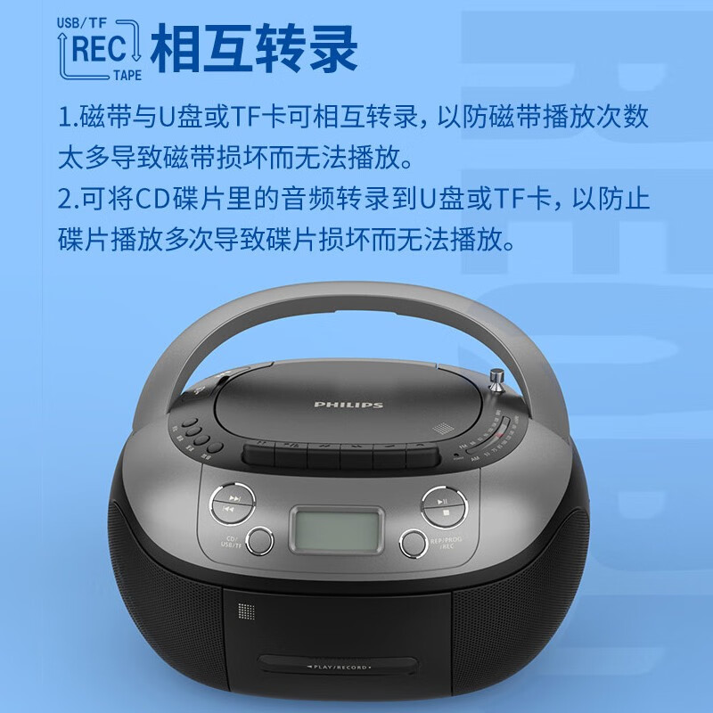 飞利浦AZ5368磁带CD播放机FM收音机U盘复读中考高考学习收录机