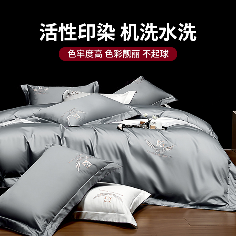开元名都120支长绒棉全棉四件套100纯棉贡缎轻奢床单刺绣被套床品