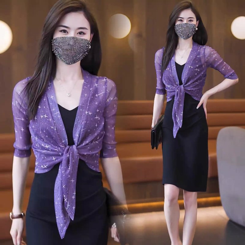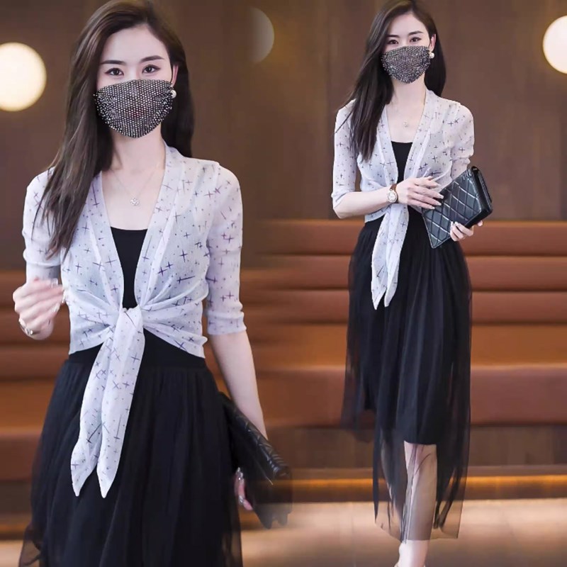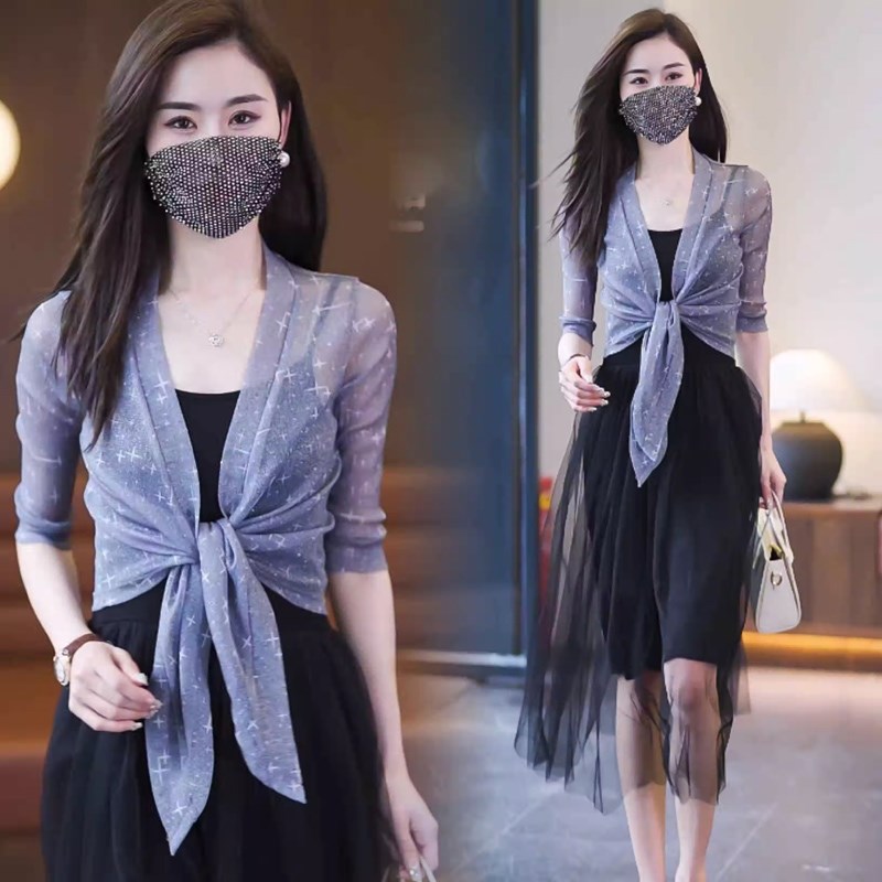 网纱开衫配吊带裙的外搭女上衣夏季新款时尚洋气披肩短款防晒罩衫