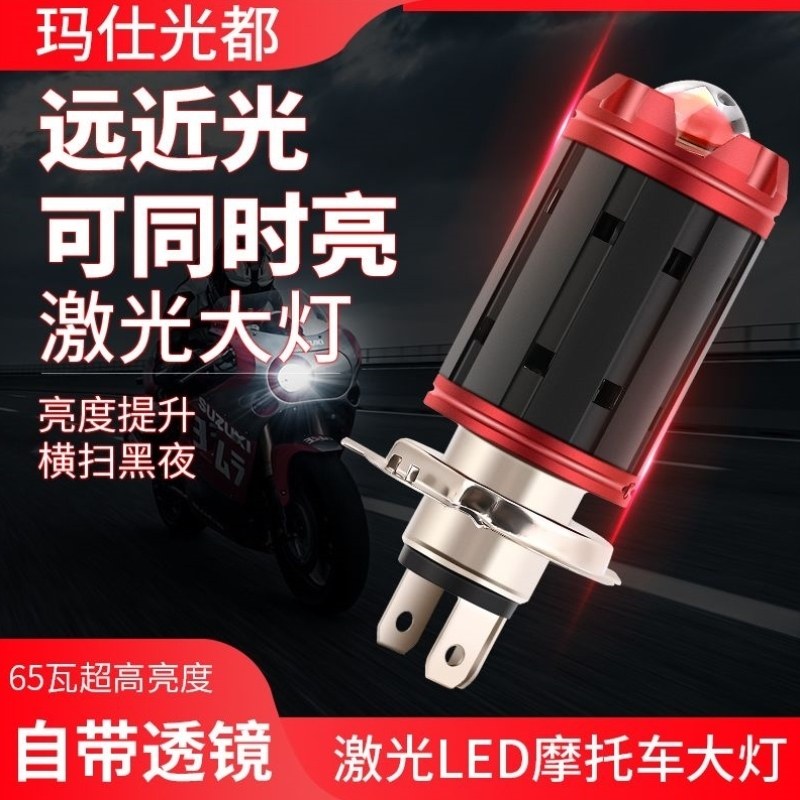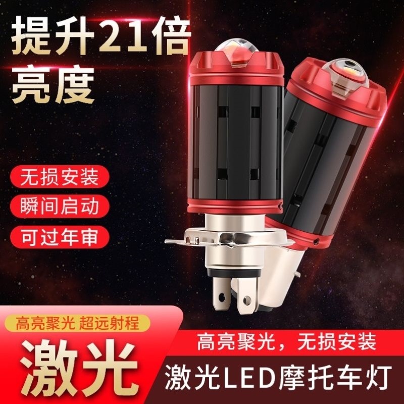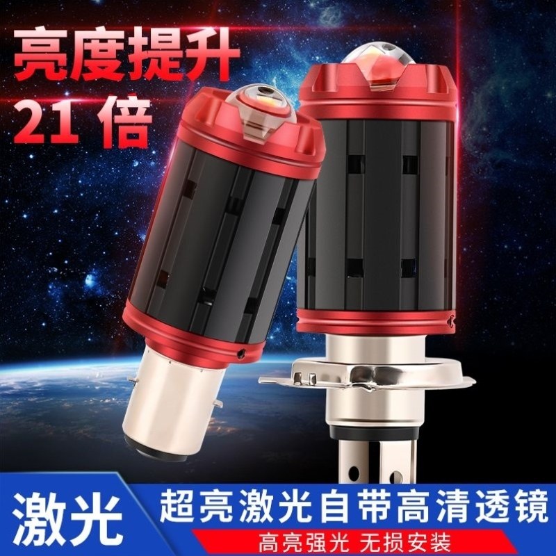 超亮激光配件摩托车强光双三爪改装M8大功率透镜大灯led聚光灯泡
