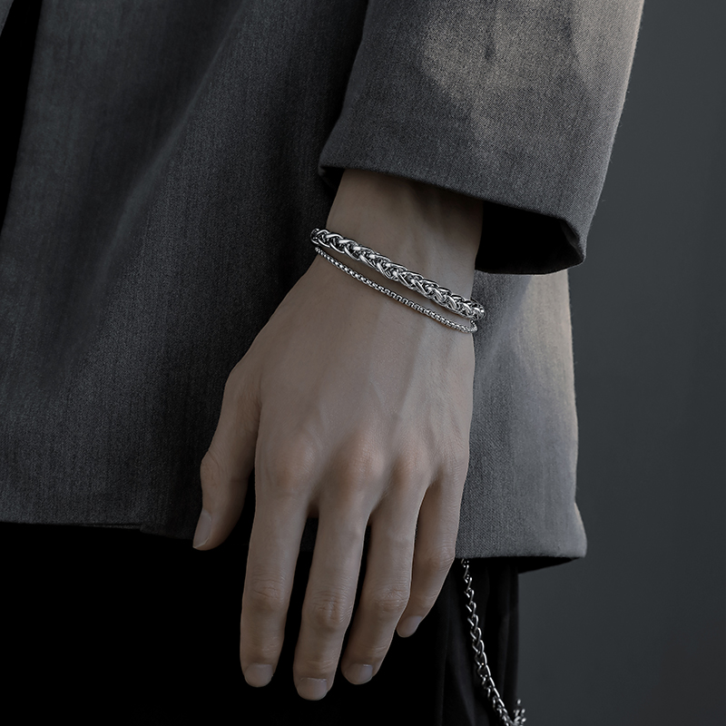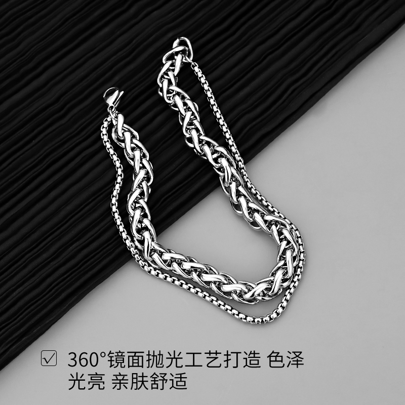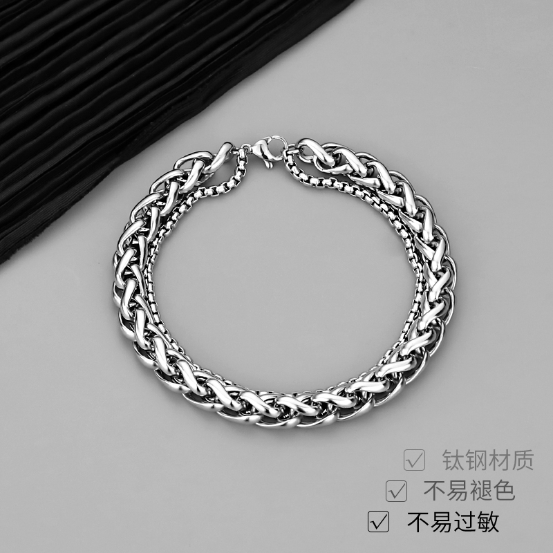 手链男款潮高级感ins小众设计嘻哈双层手串首饰品简约男生钛钢链