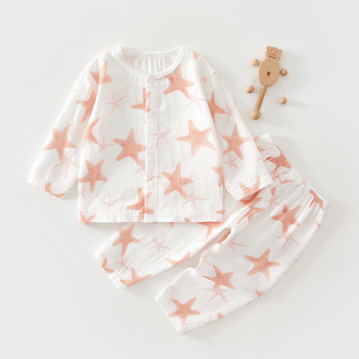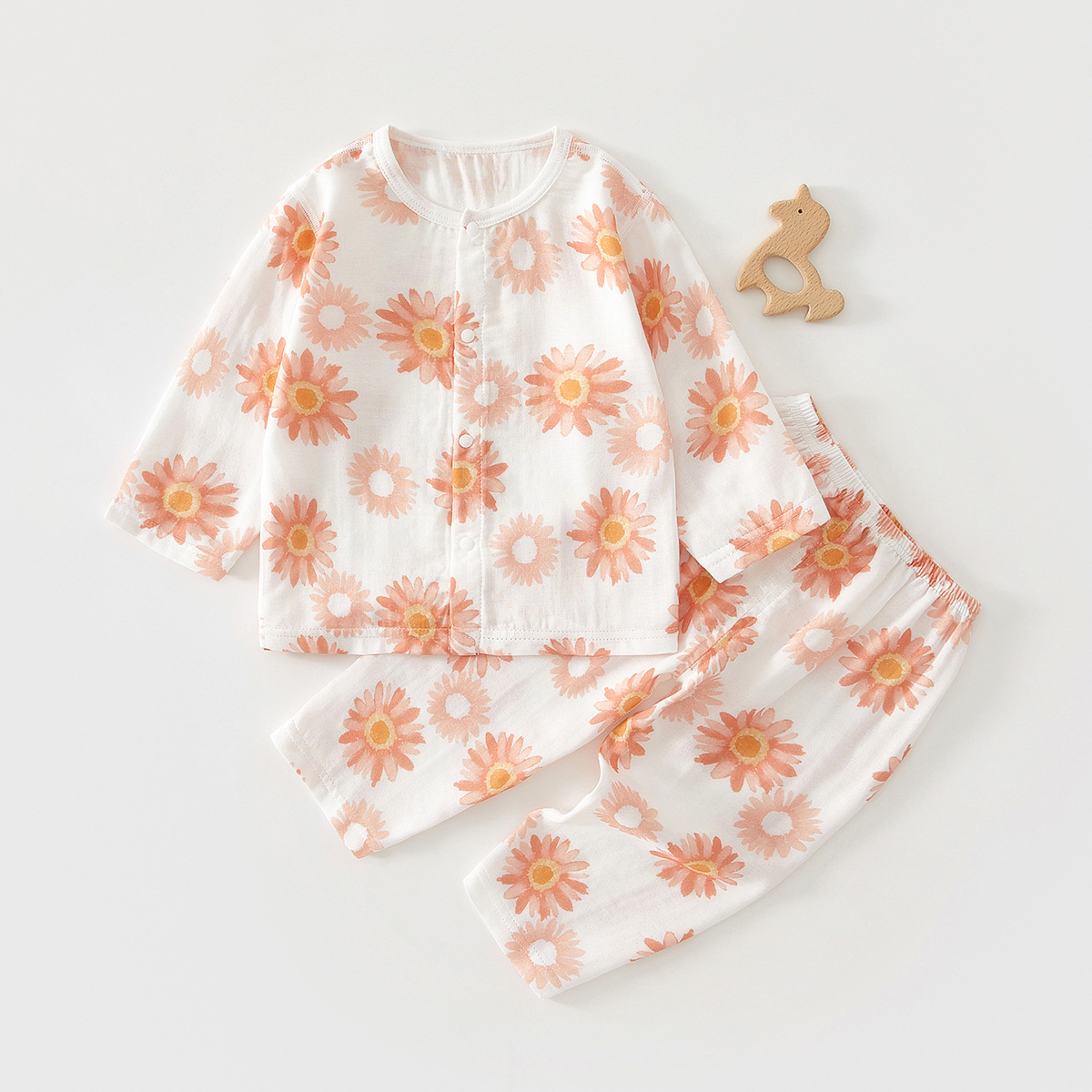 婴儿衣服夏季薄款分体套装纱布透气长袖长裤男女宝宝婴儿两件套装