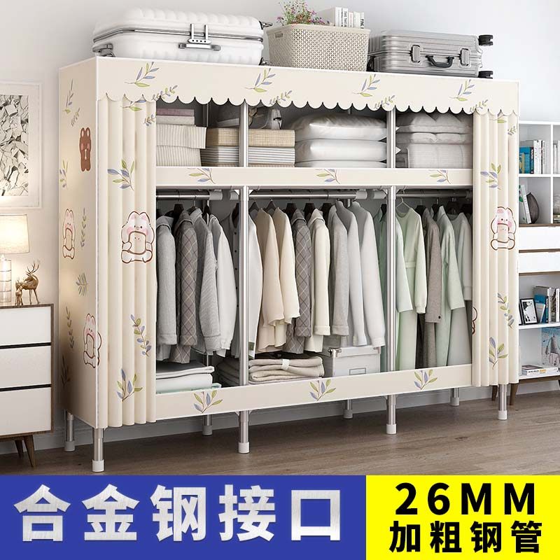 26mm简易衣柜布衣柜家用卧室全钢架出租房用钢管加粗加厚结实耐用