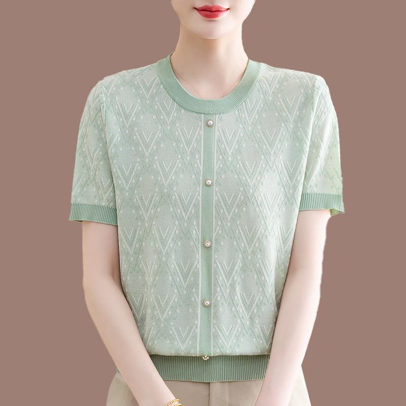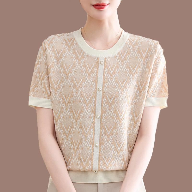 妈妈夏季2025新款短袖冰丝上衣中老年女装气质T恤小香风高贵小衫