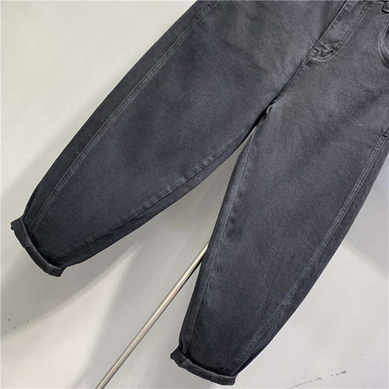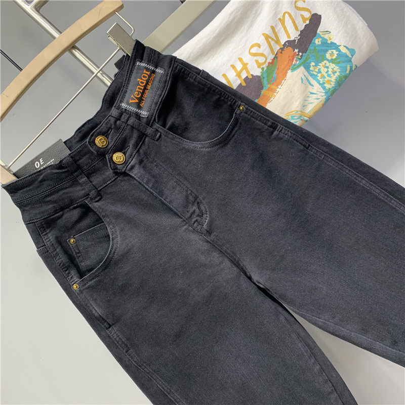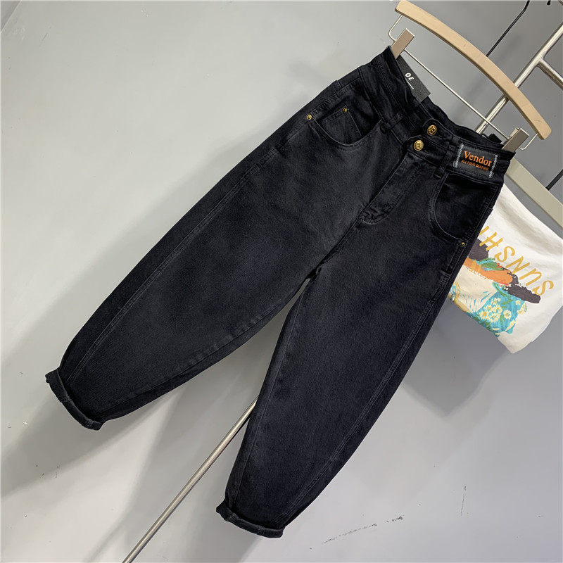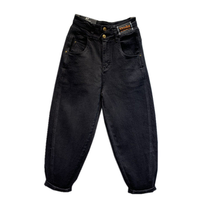欧货2026春季新款高腰两粒扣黑色水洗棉弹老爹牛仔垮裤洋气哈伦裤