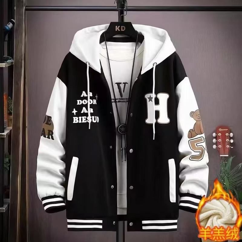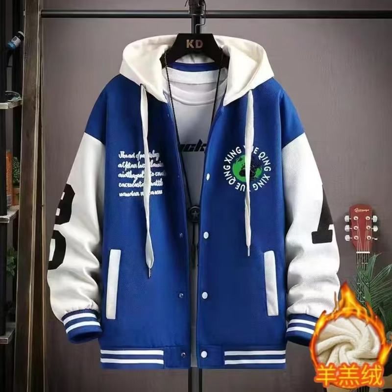 加厚大童青少年初中加绒男孩学生服帅气外套连帽春秋套装棒球冬季
