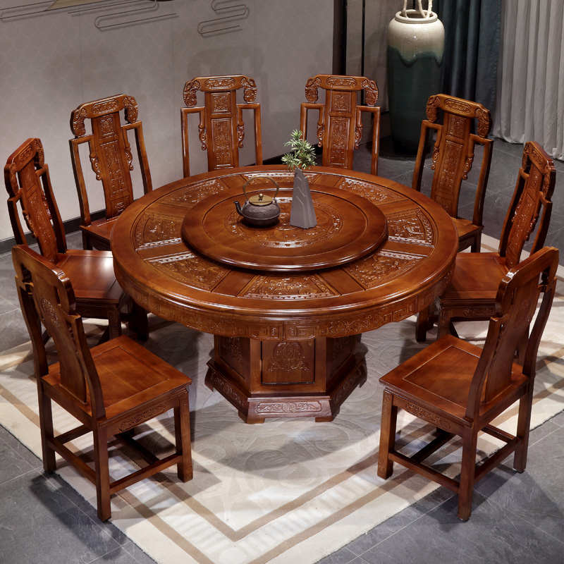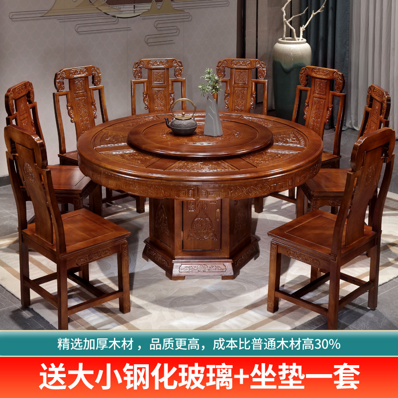 2024新款实木餐桌椅组合家用客厅大圆桌10人饭店农村中式圆形饭桌