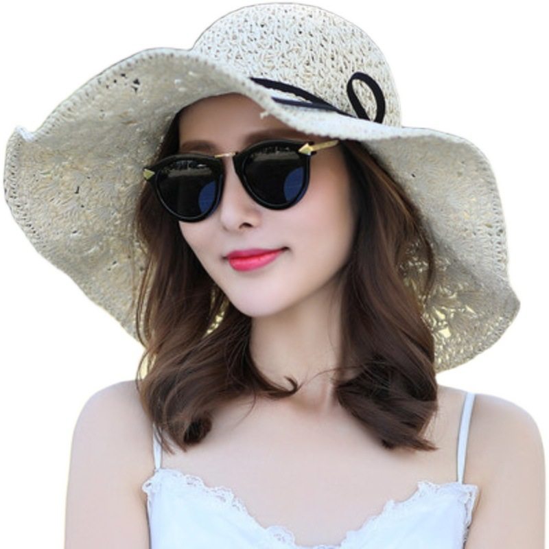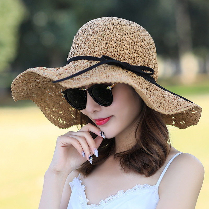 帽子女夏季小清新草帽遮阳帽防晒太阳帽可折叠百搭大沿沙滩帽凉帽