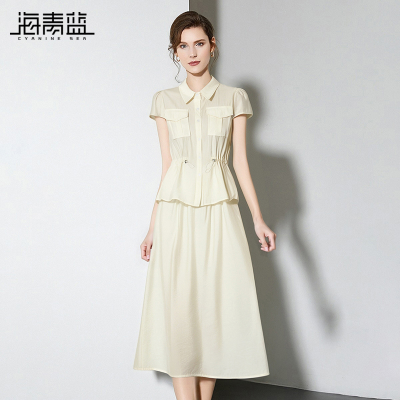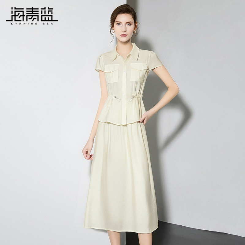 海青蓝 套装夏女2025新款纯色短袖上衣高级时尚休闲半身裙两件套