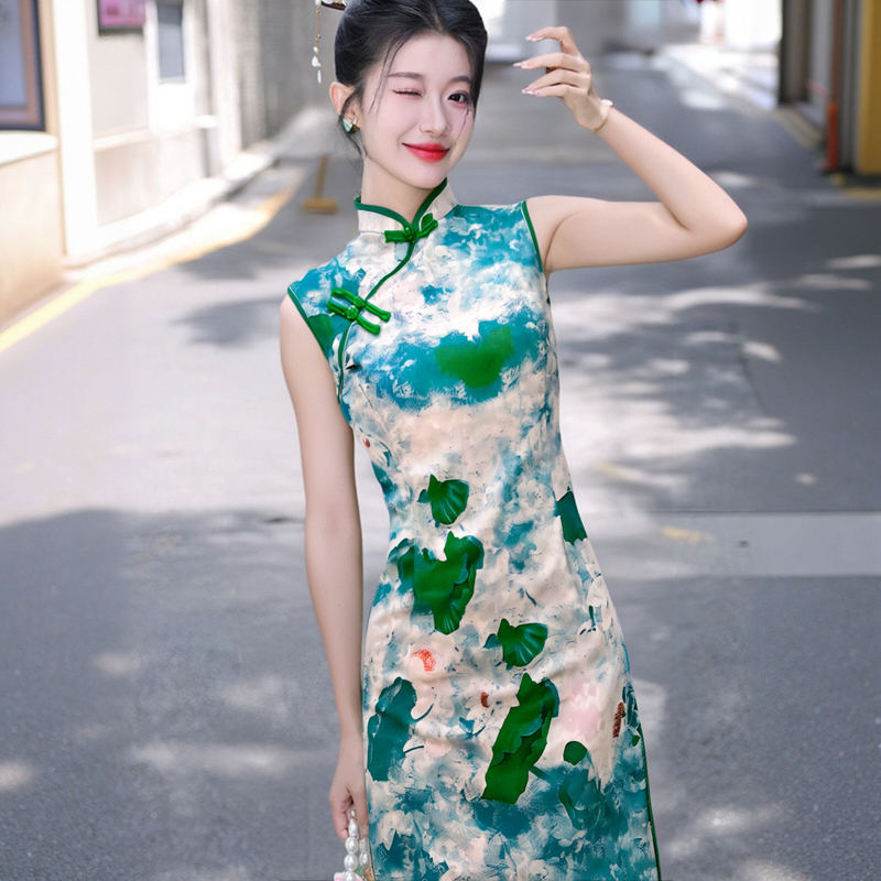 2025新款年轻款少女复古修身无袖款夏季中长款国风中式改良旗袍