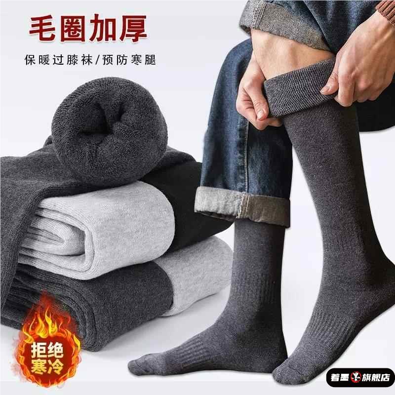 长筒袜子男冬季加厚过膝袜加绒保暖老人长袜冬天护膝盖男士高筒袜