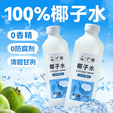 广禧优品常温100%纯椰子水1KG椰子汁NFC家商用椰青水含电解质果汁