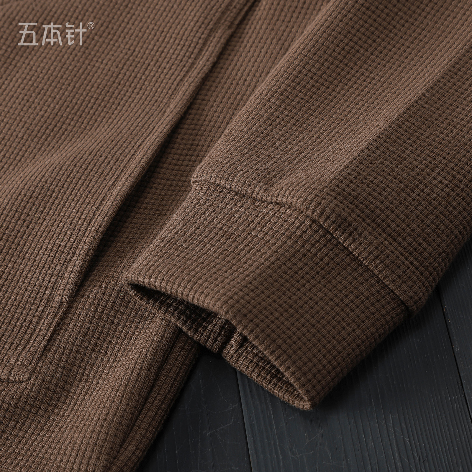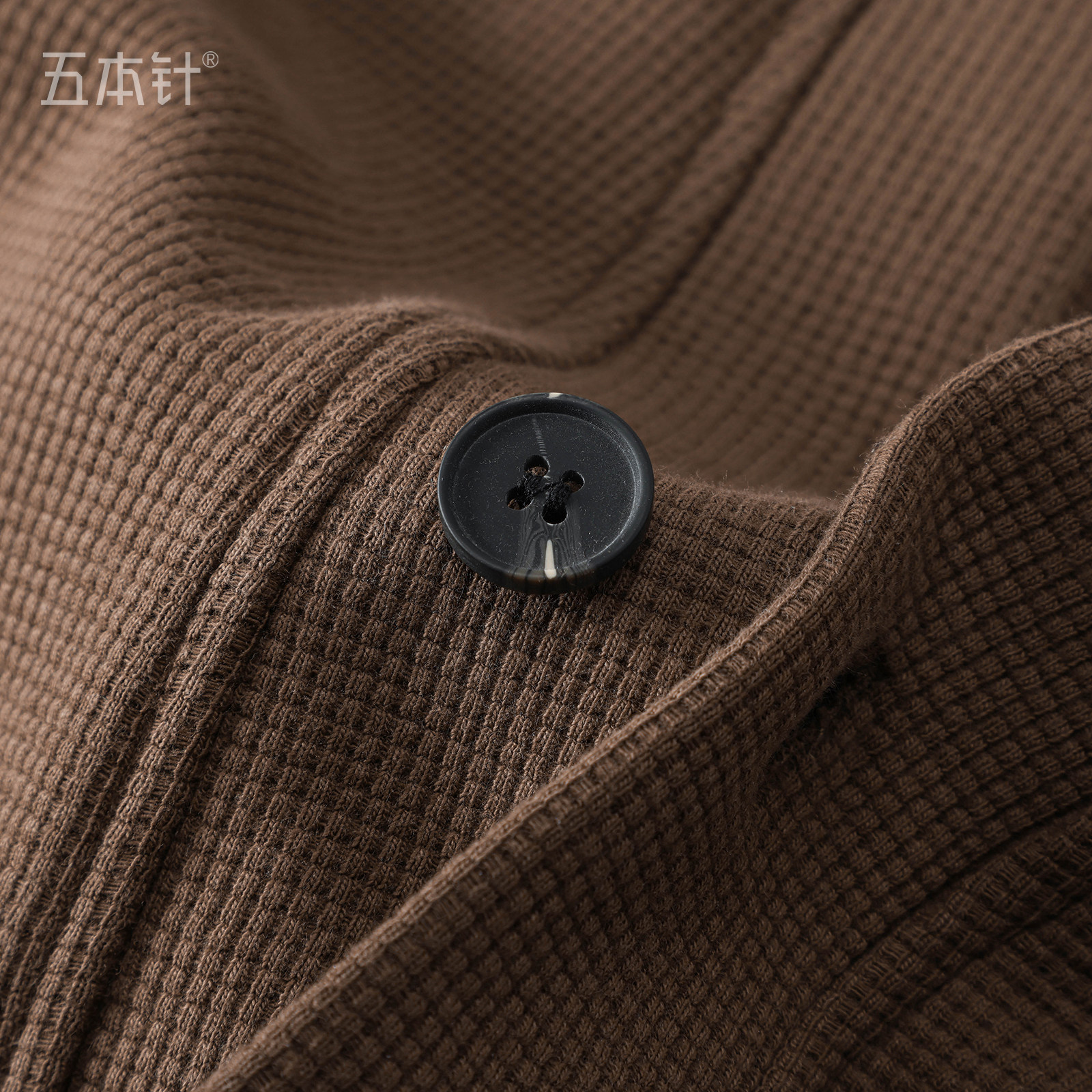 470g秋冬季华夫格开衫棉质卫衣 纯色保暖百搭V领纽扣咖啡色外套