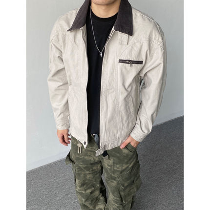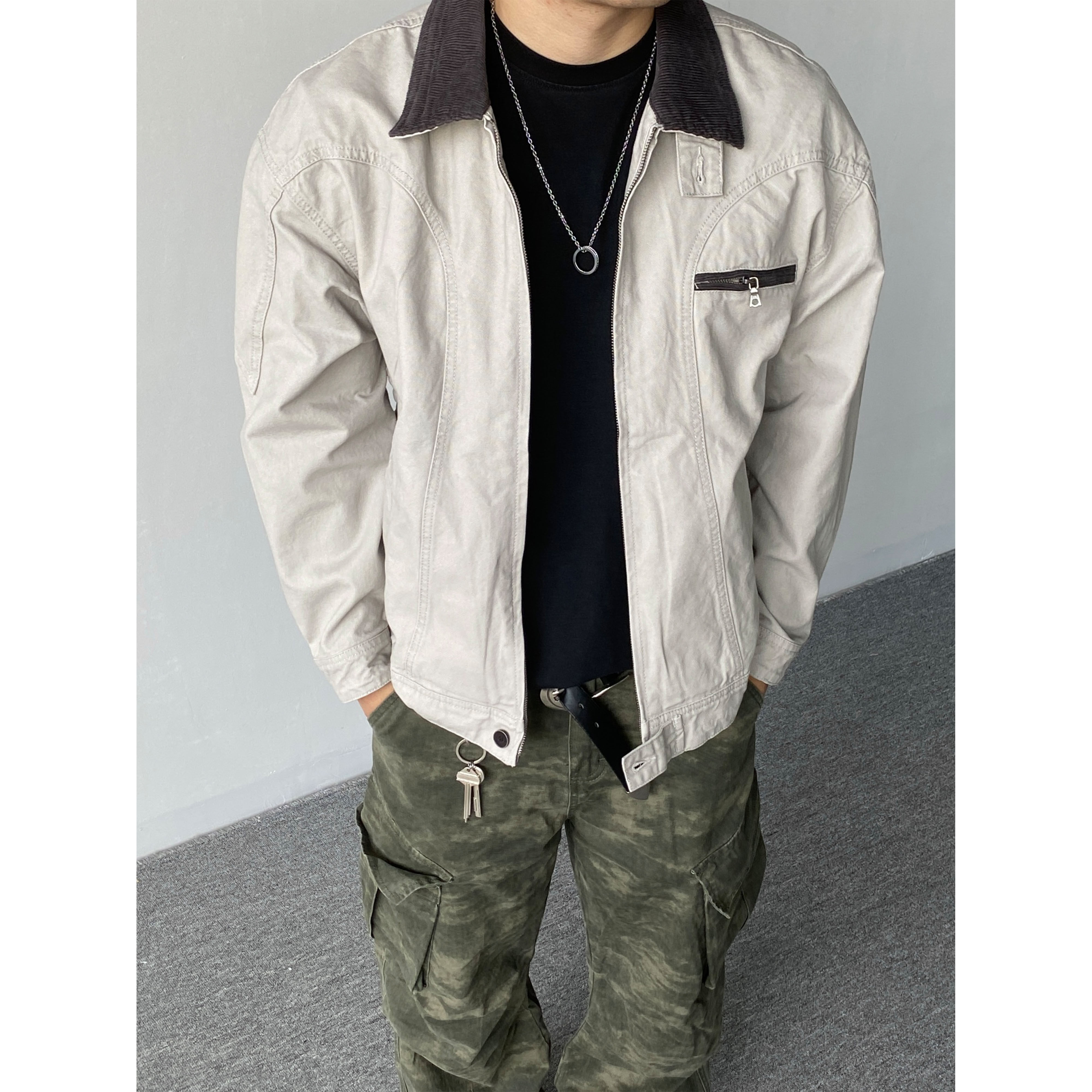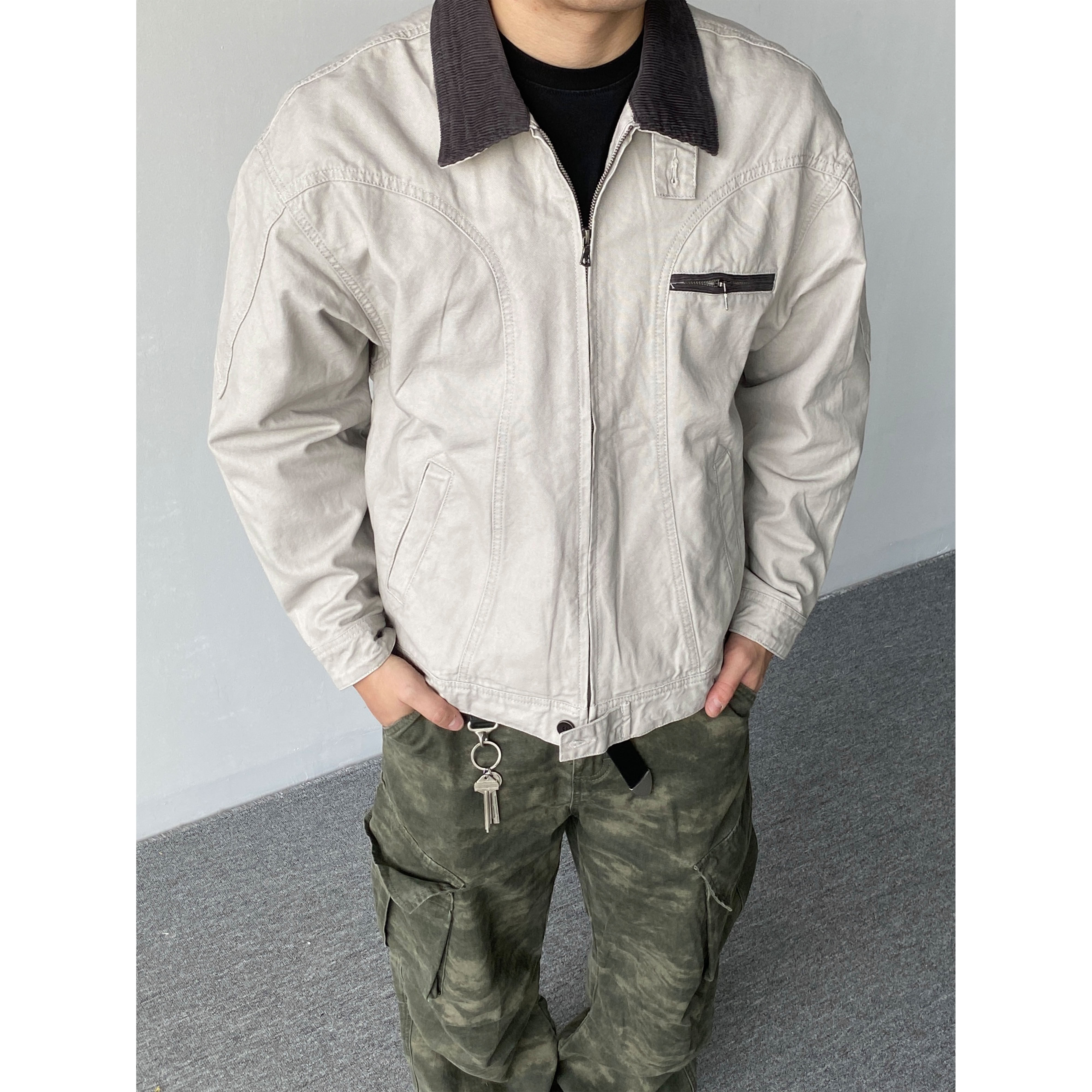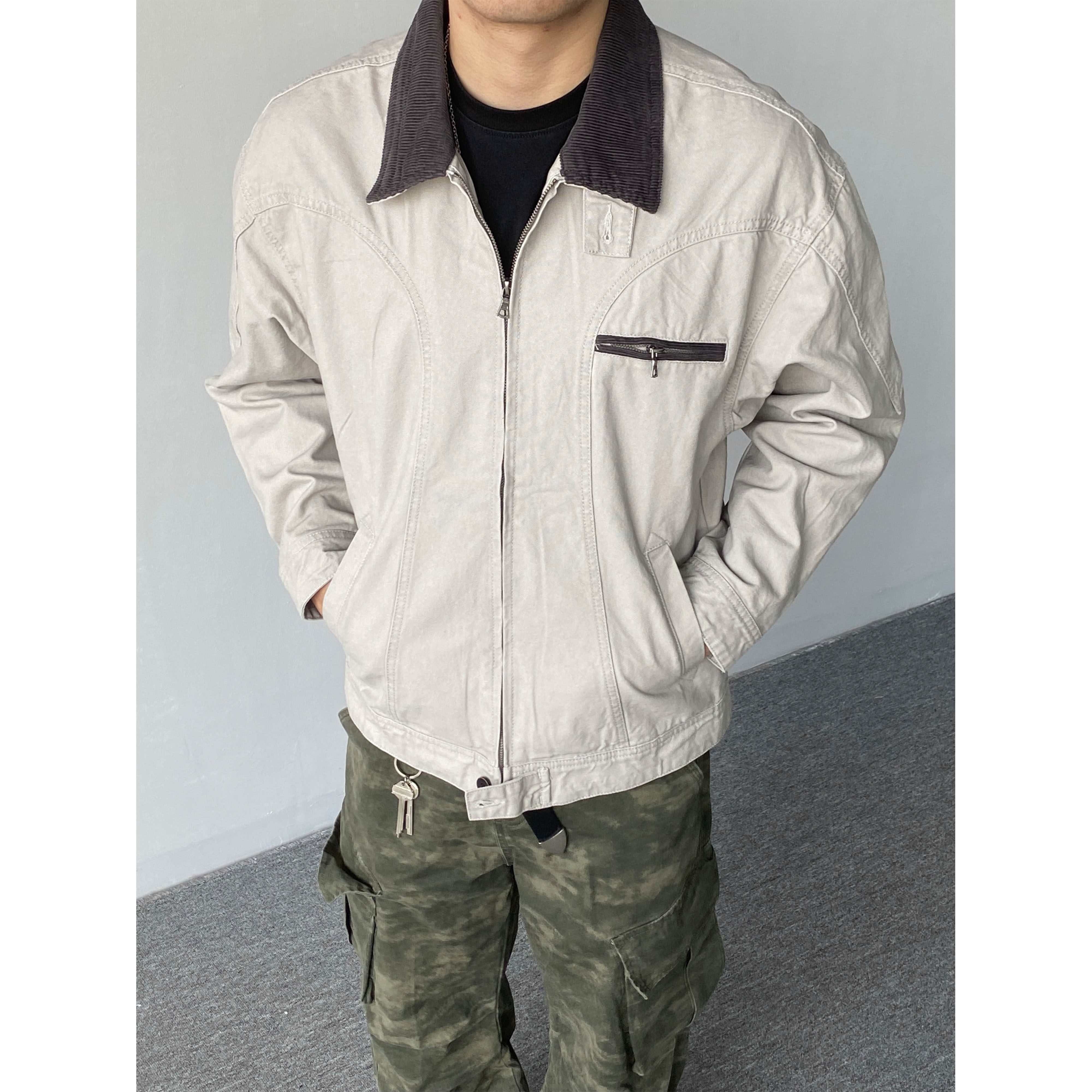 98SQUID美式复古vintage底特律撞色工装夹克情侣宽松休闲痞帅外套