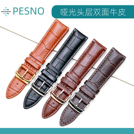 PESNO真皮表带 头层男女牛皮皮带代用浪琴DW卡西欧天王天梭 黑棕