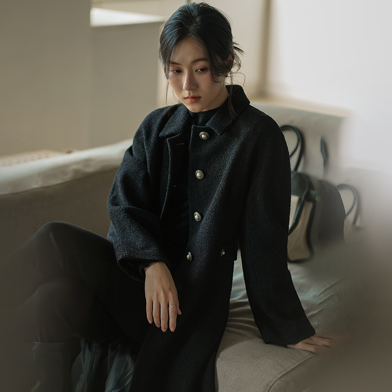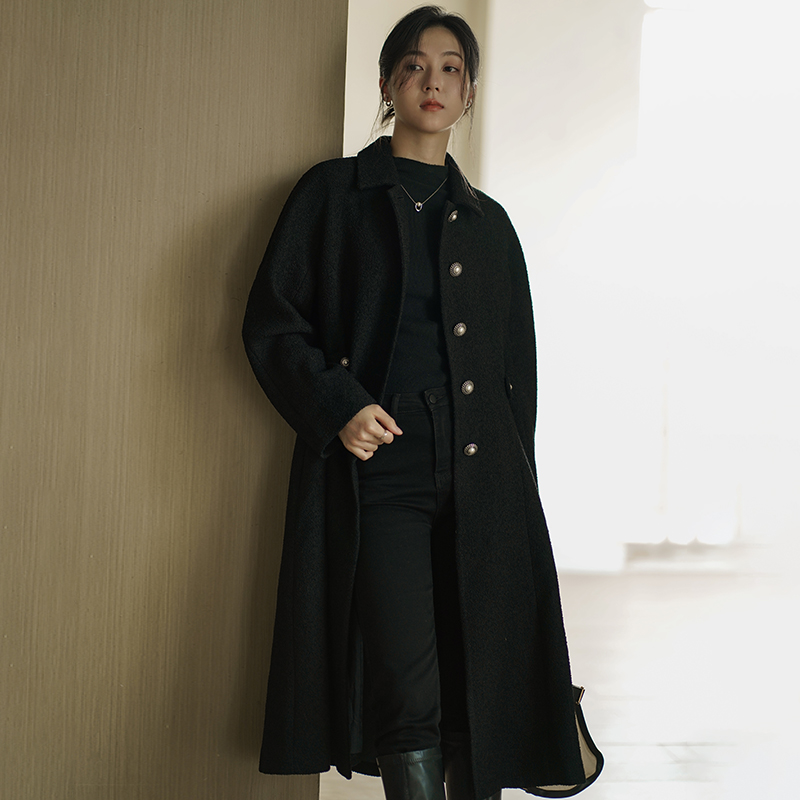 无谓2025秋冬新款女装毛呢大衣宽松长款过膝气质收腰羊毛呢外套女