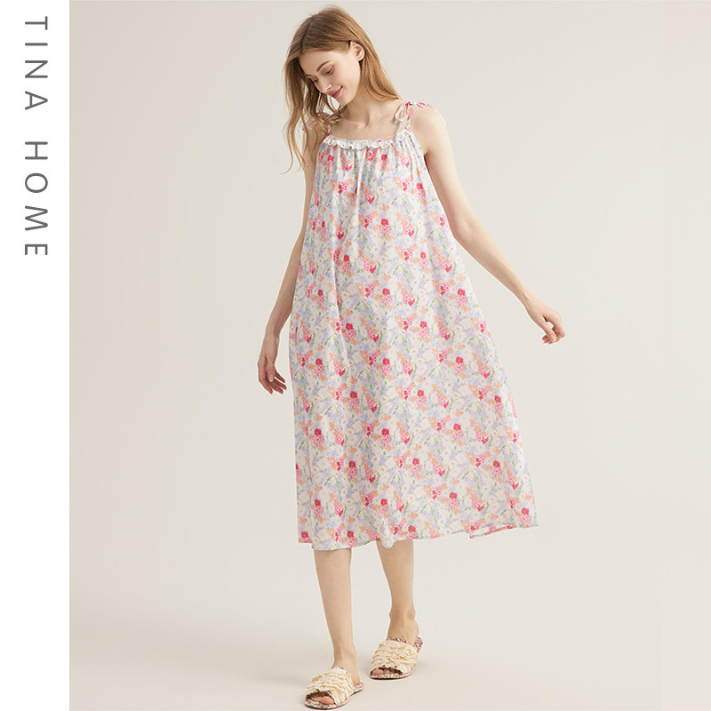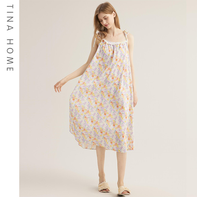 法式浪漫田园风碎花夏季长款系带睡裙吊带裙可外穿裙子