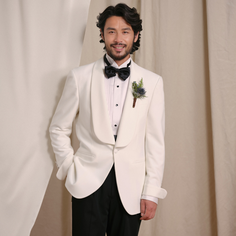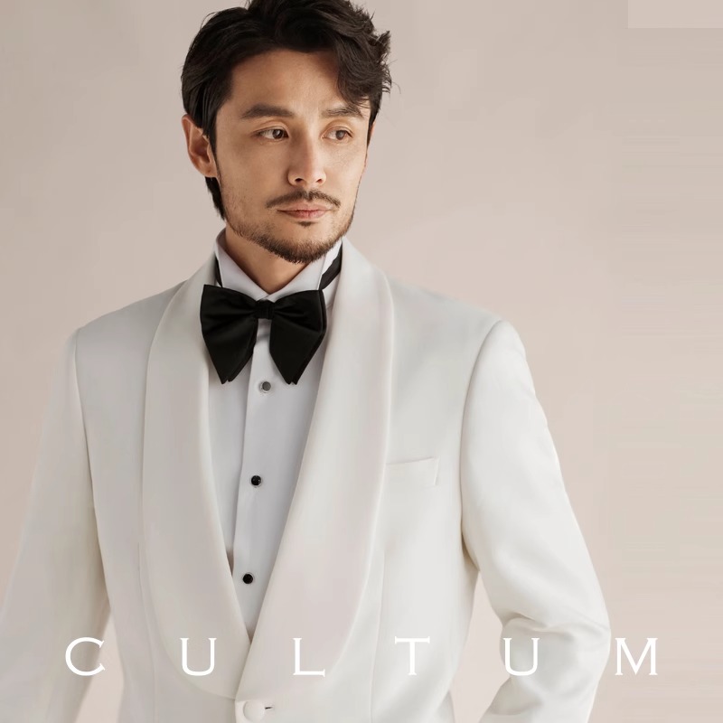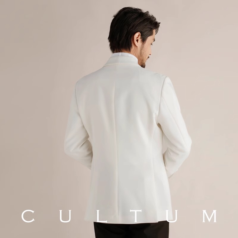 CULTUM商务绅士修身青果领白色单西服男士结婚宴会高级感新郎礼服