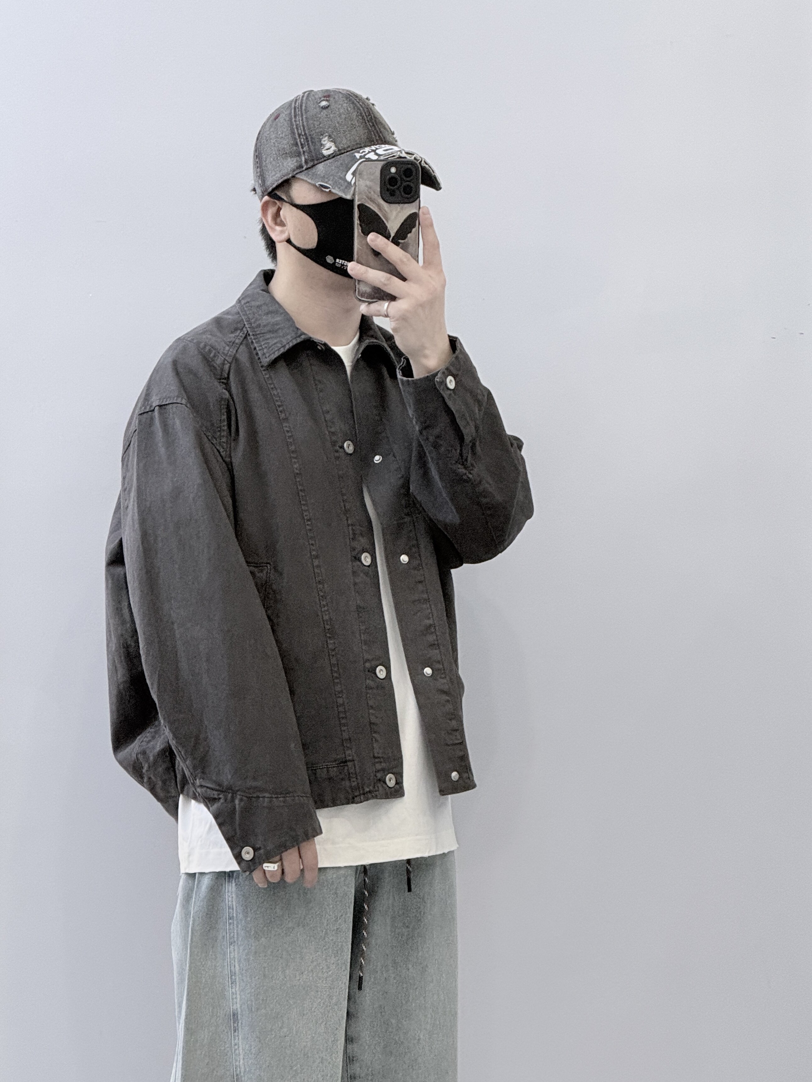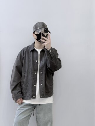 春季新款设计感拼接牛仔外套男潮流宽松休闲百搭廓形翻领夹克上衣