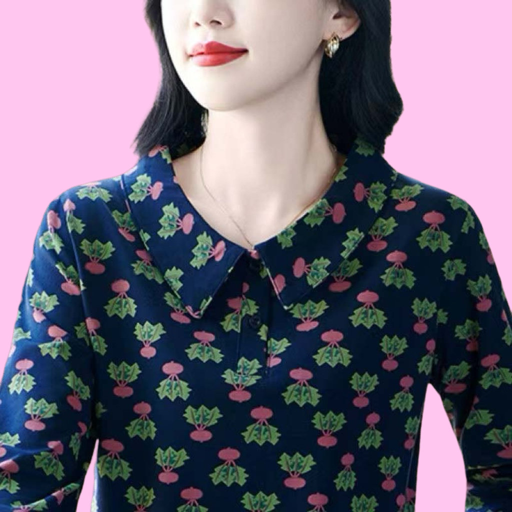 翻领长袖t恤女装2025春秋新款洋气妈妈polo衫显瘦减龄上衣打底衫
