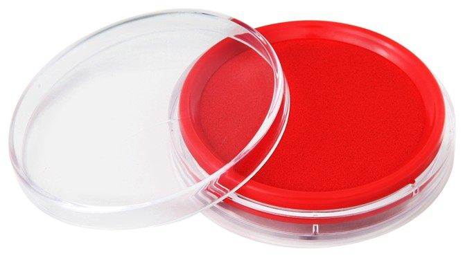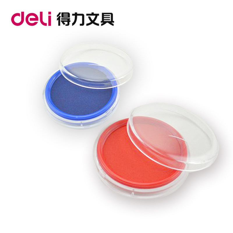 得力9863圆形透明外壳 快干印台 红蓝色 财务办公印泥 印章专用