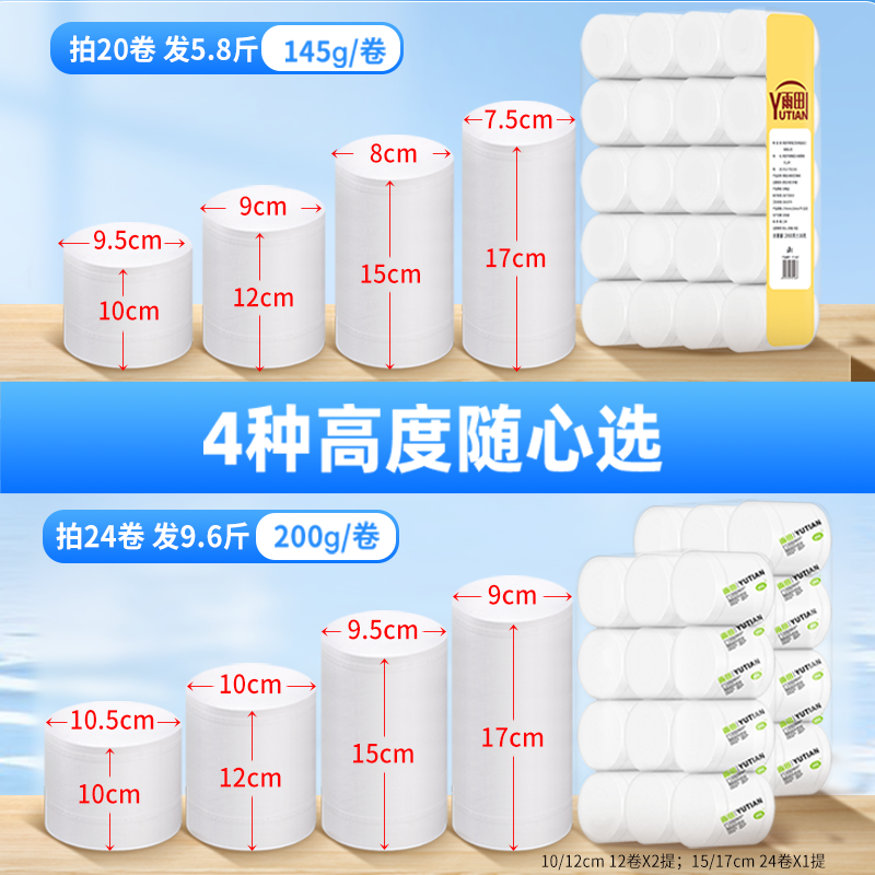 10斤/6斤卷纸无芯卷筒纸厕所卫生纸家用实心家庭实惠装厕纸巾整箱