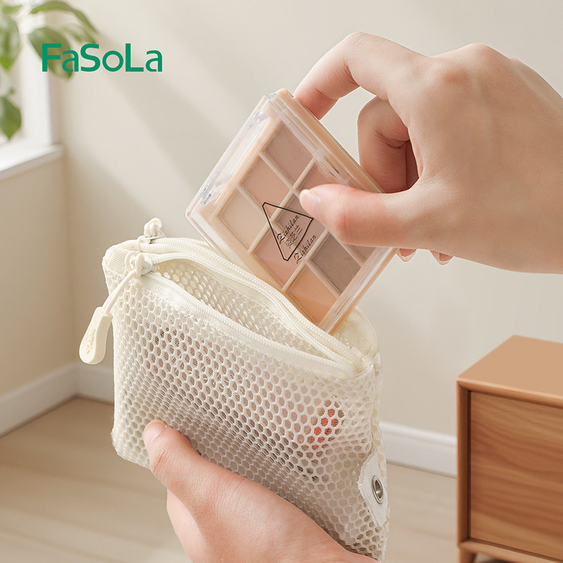 FaSoLa旅行洗漱包游泳便携式外出网格化妆收纳袋网眼透明小包网纱