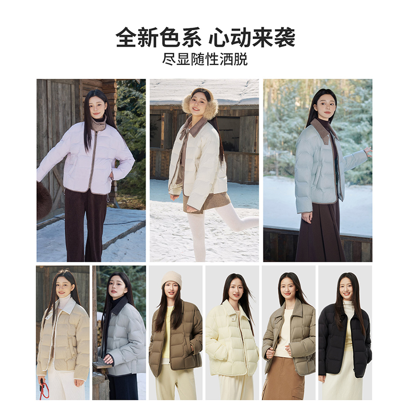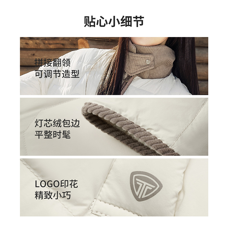 坦博尔轻薄羽绒服女翻领秋冬季新品衬衫领时尚撞色灯芯绒拼接外套
