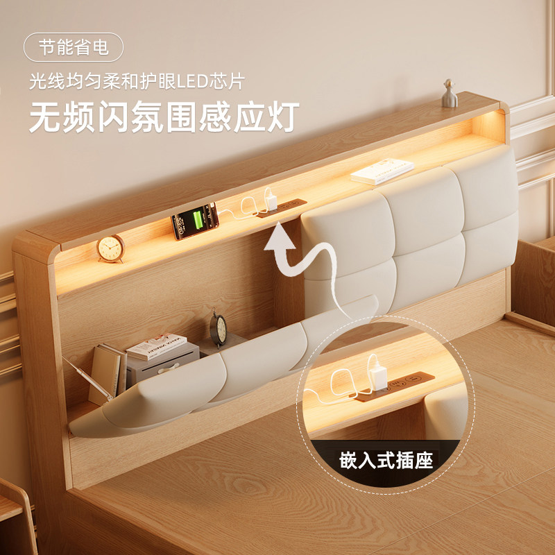 全实木床家用现代简约轻奢ENF级双人1.5米主卧高箱储物箱体床大床