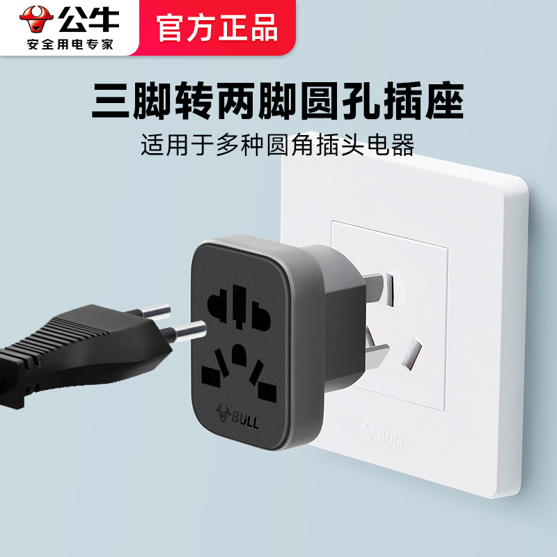 公牛圆孔转换器插头圆头插座国标转欧标中转欧圆形欧标德标转换头