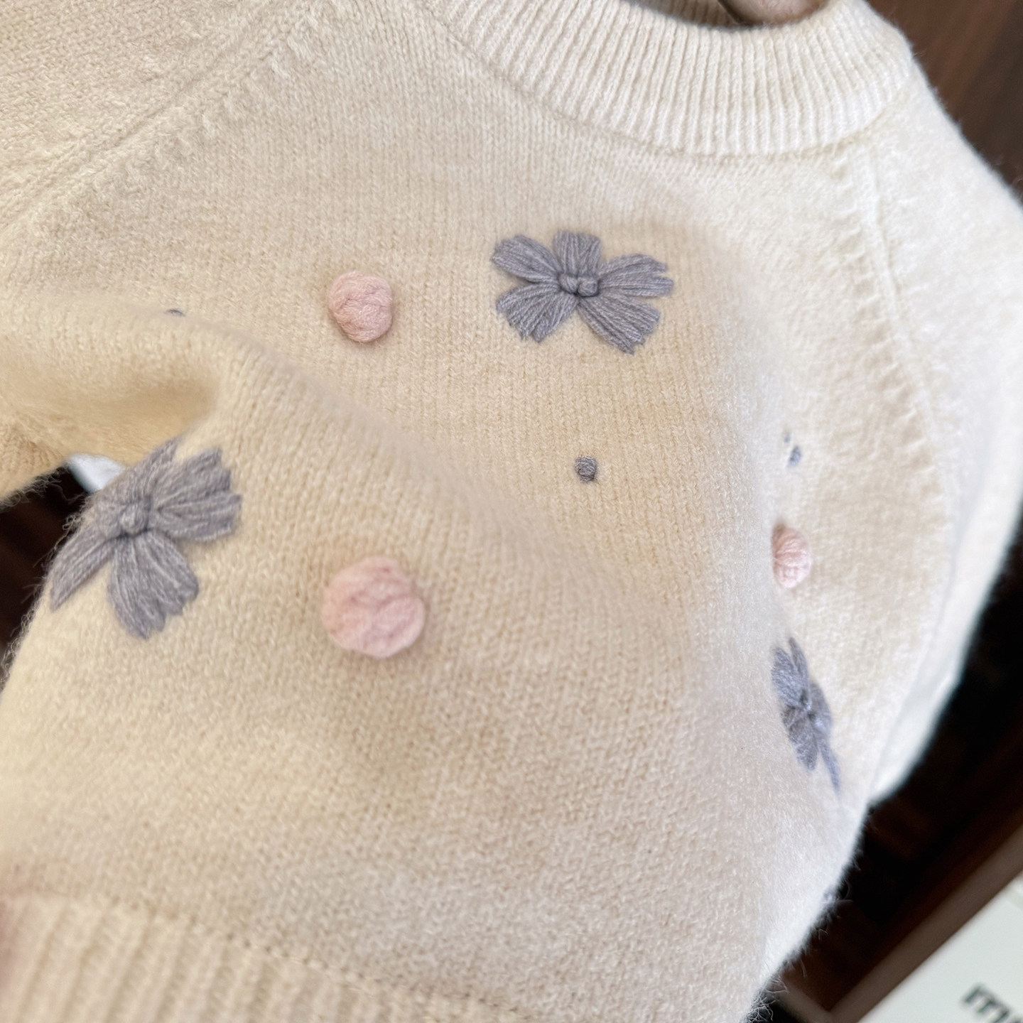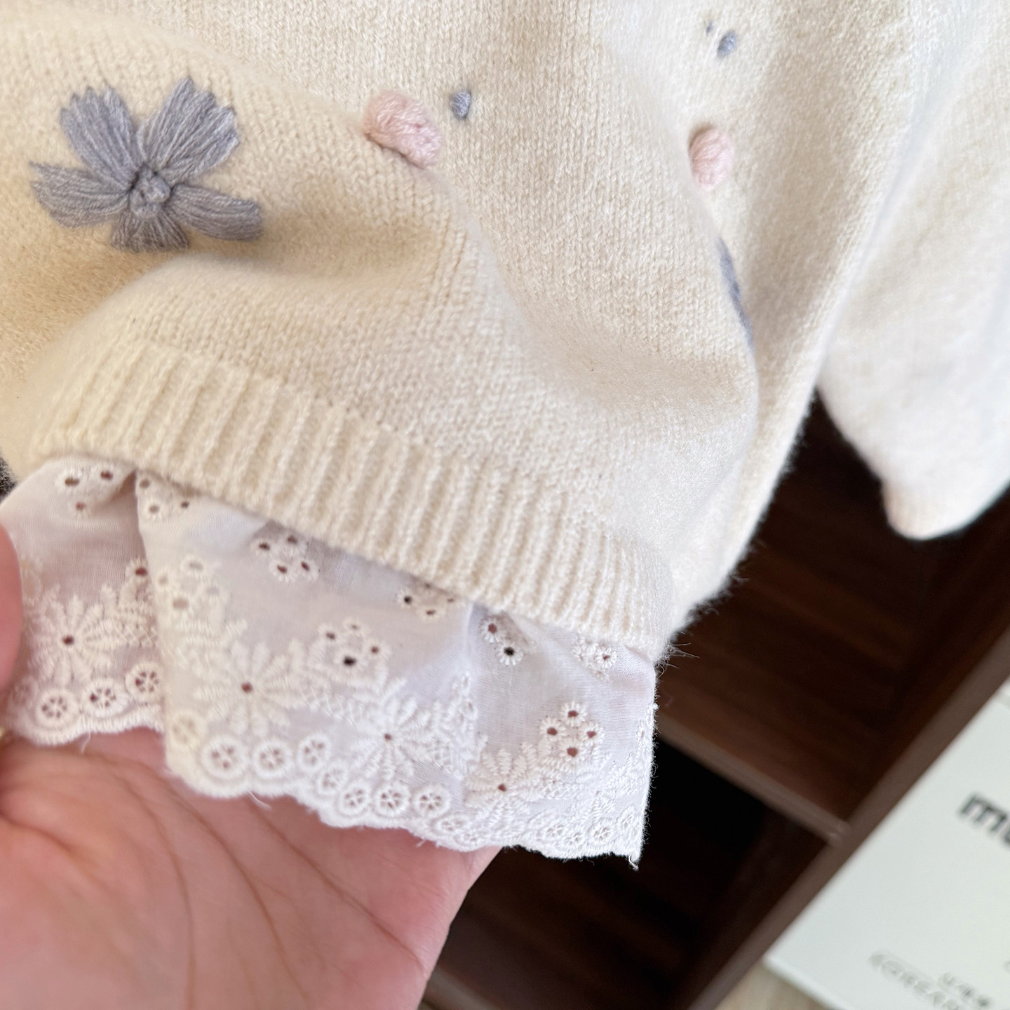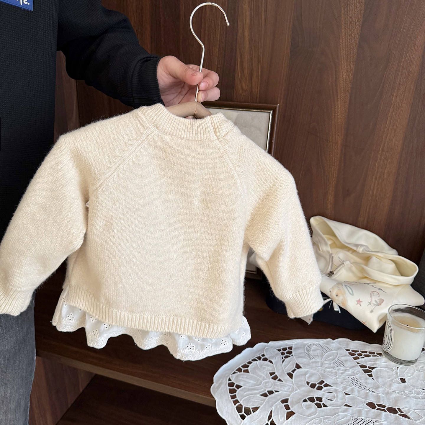 女宝宝洋气拼接蕾丝毛衣女婴儿童冬款女童加厚磨毛德绒针织打底衫