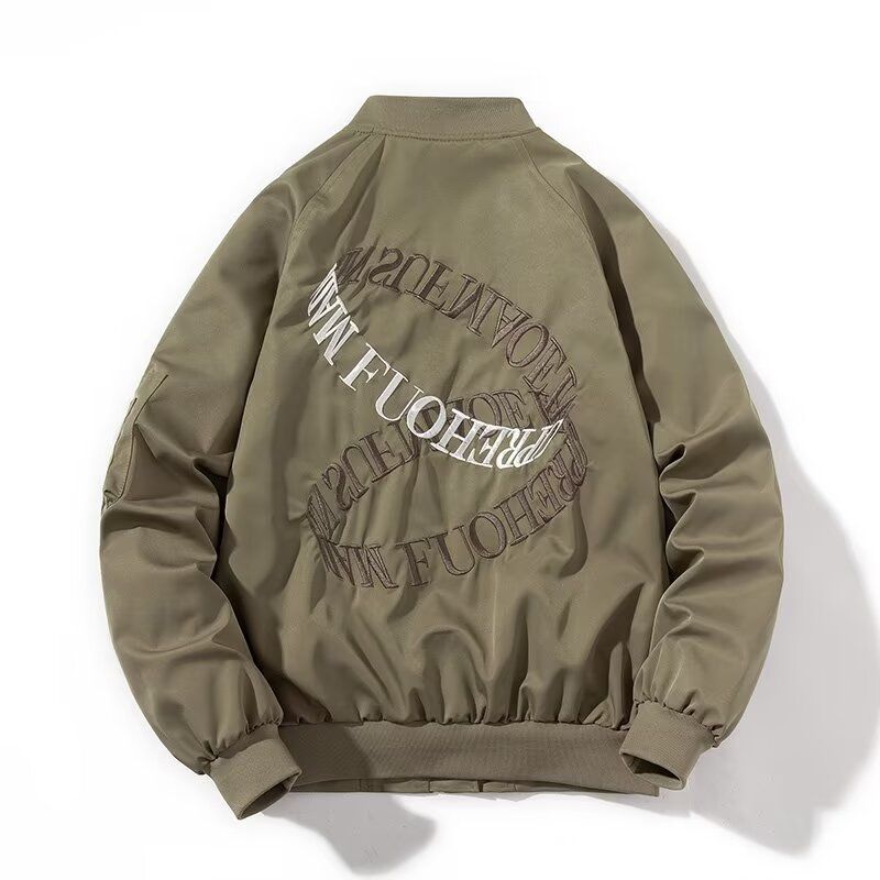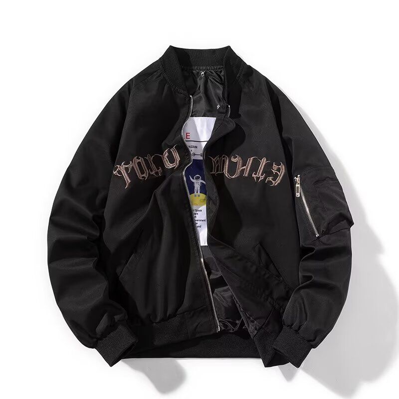 潮牌美式字母刺绣棒球服飞行员夹克男情侣复古秋冬季加厚棉服外套