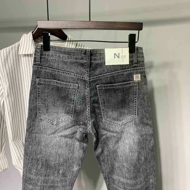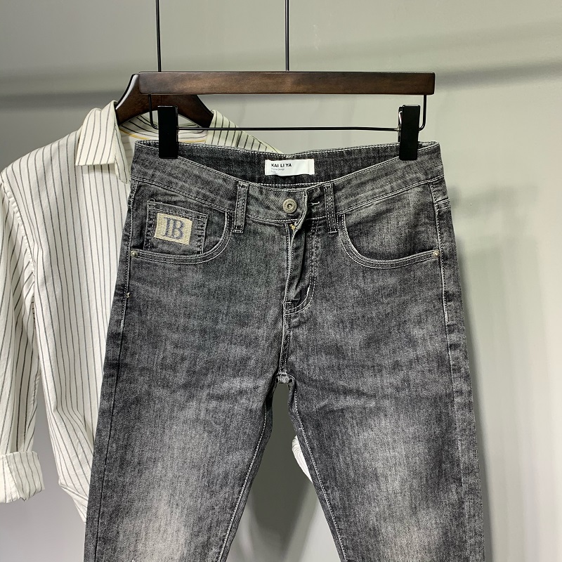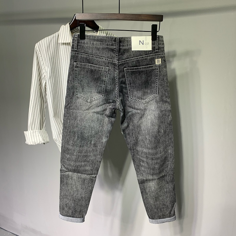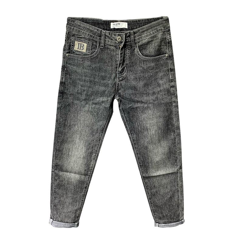 潮流牛仔裤男士2023年夏季新款黑灰色韩版刺绣修身小脚弹力九分裤