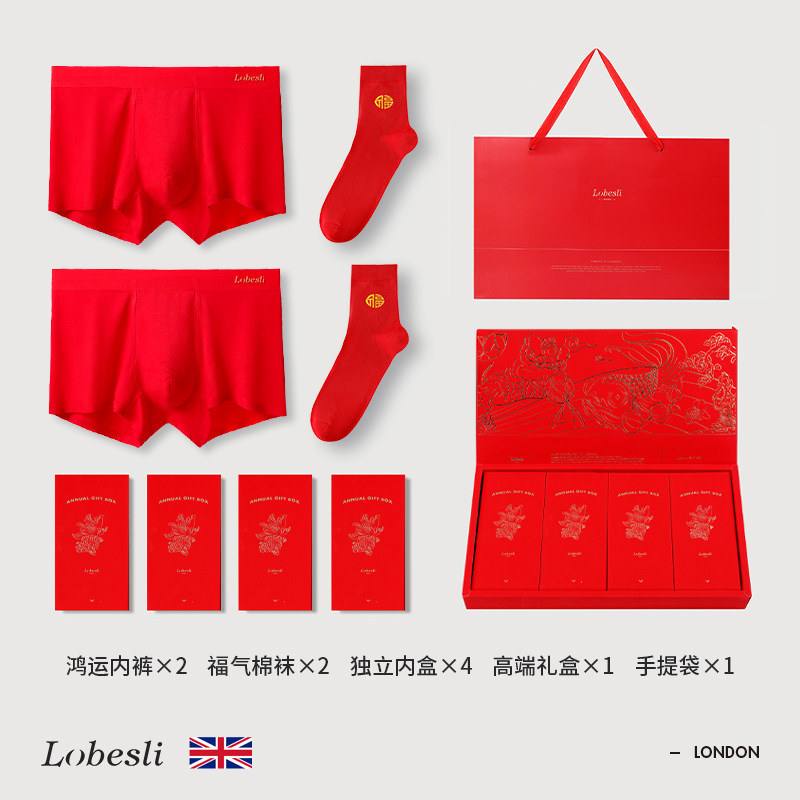英国lobesli红红火火本命年红色男士内裤莫代尔短裤属马年礼盒装