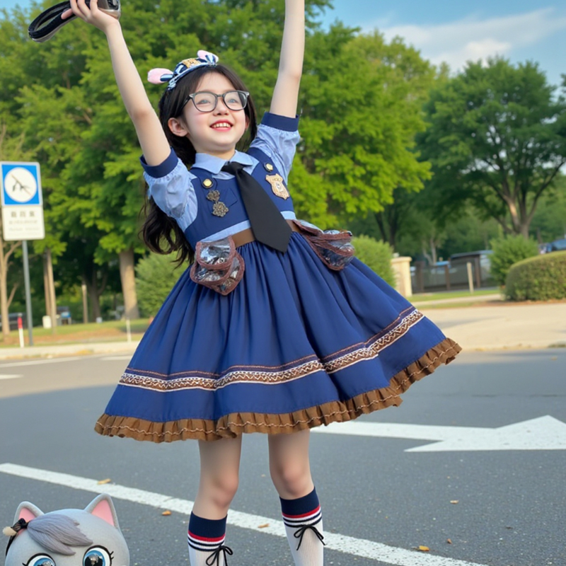 朱迪兔子警官衣服儿童cos疯狂动物城春秋夏季女宝宝公主连衣裙