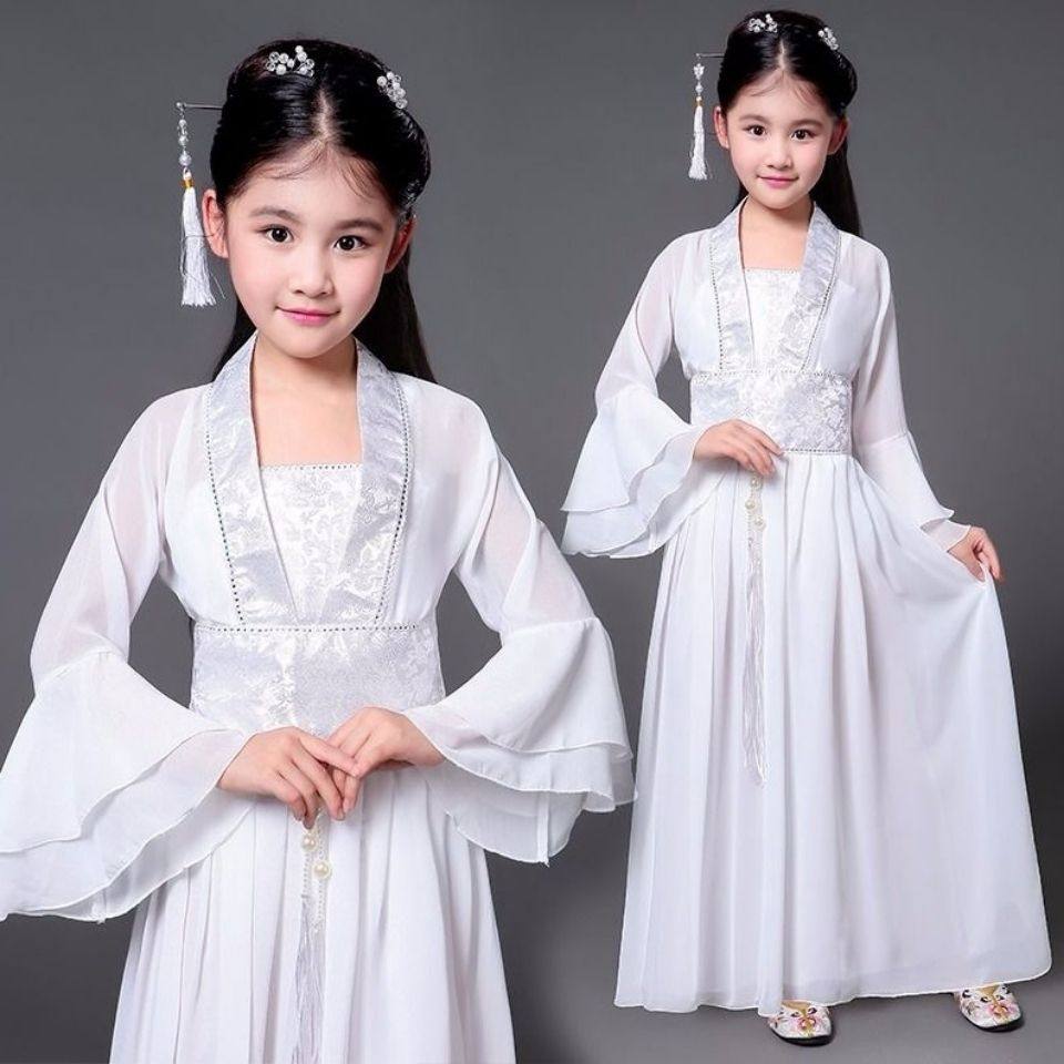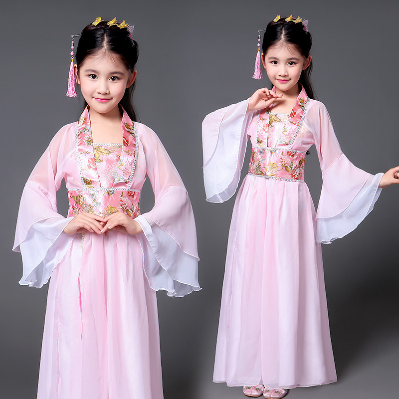 儿童古装女唐朝汉服公主拖尾贵妃宫廷古代衣服仙女古筝演出服装