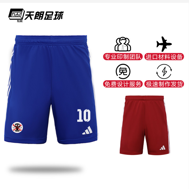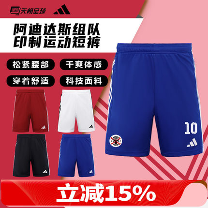 天朗足球阿迪达斯运动透气比赛光板团队印制印号组队短裤JW9913