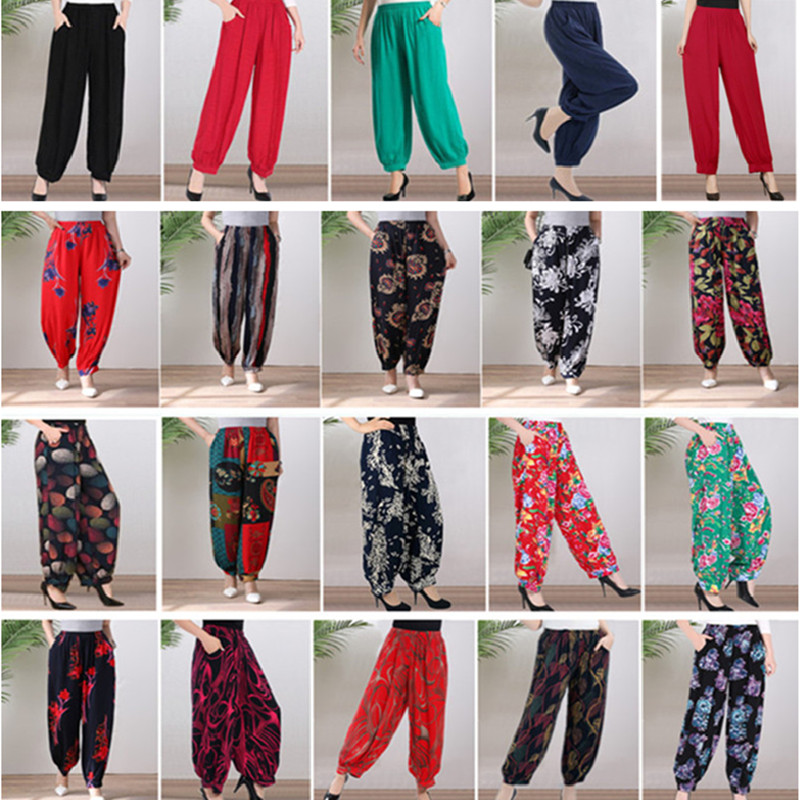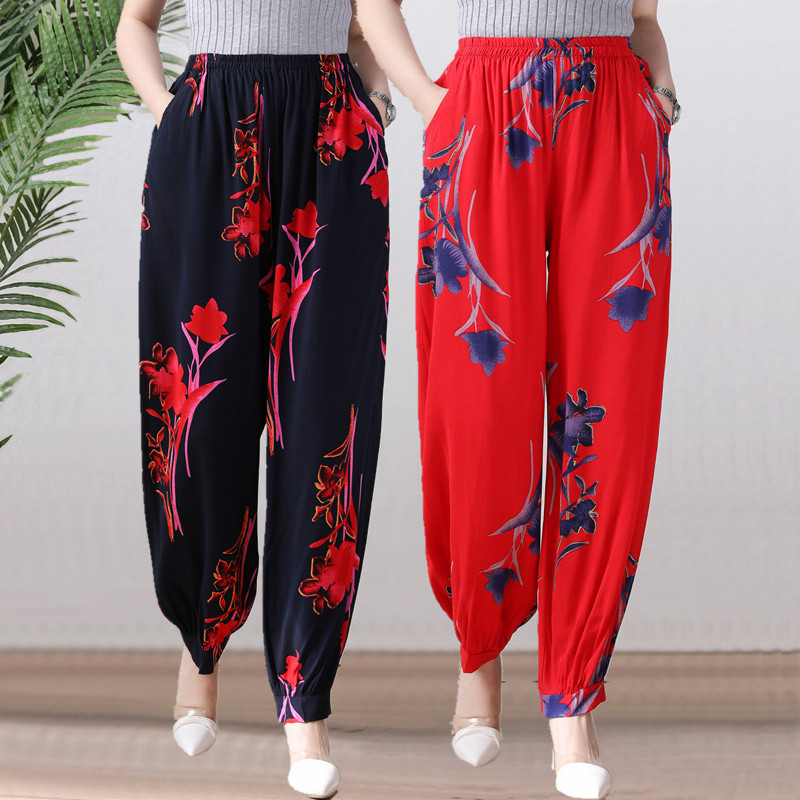 民族风人造棉长裤休闲裤大码宽松棉绸灯笼裤女夏季海边度假沙滩裤