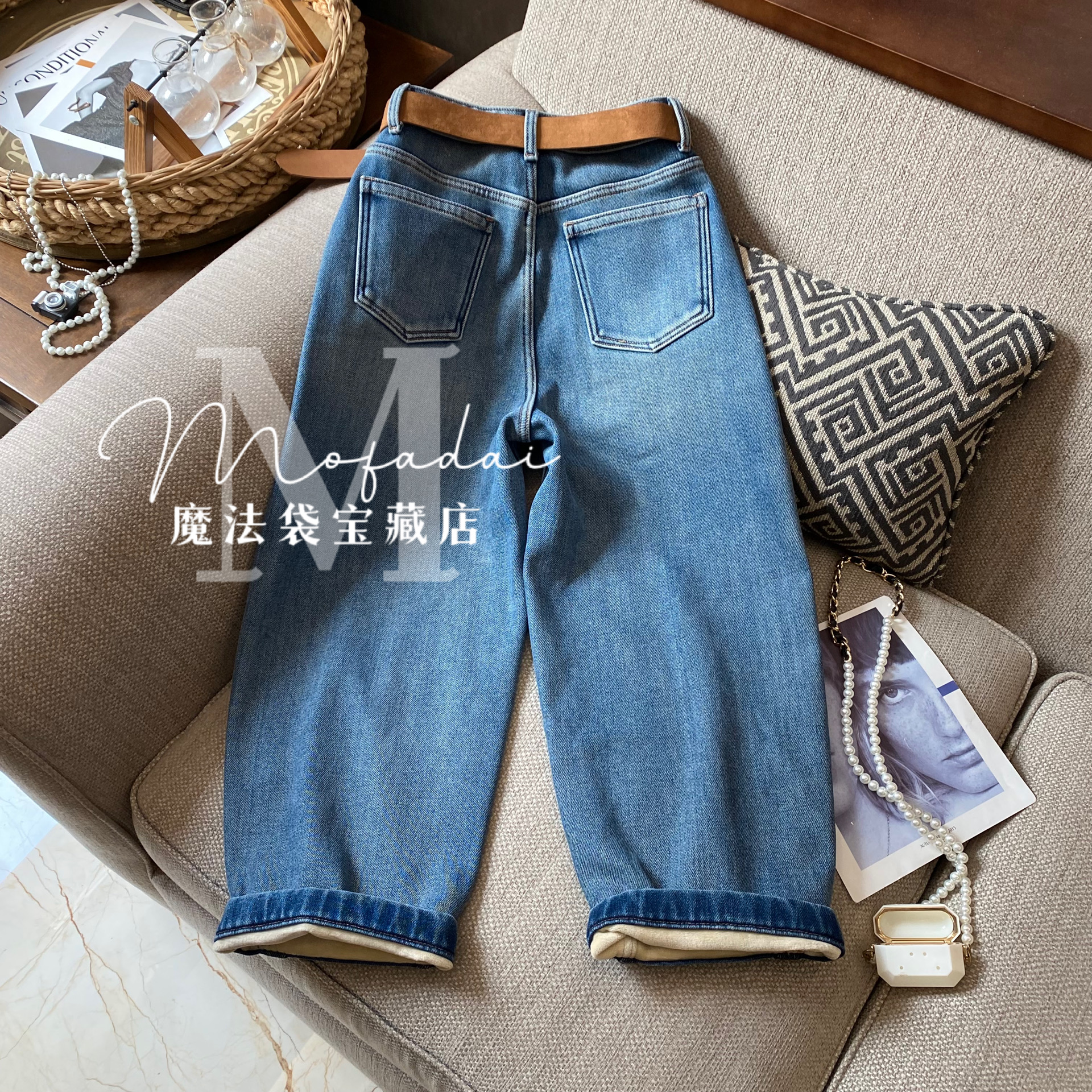 蓝色加绒垮裤2025冬季新款牛仔裤女装加厚保暖宽松弹力九分裤