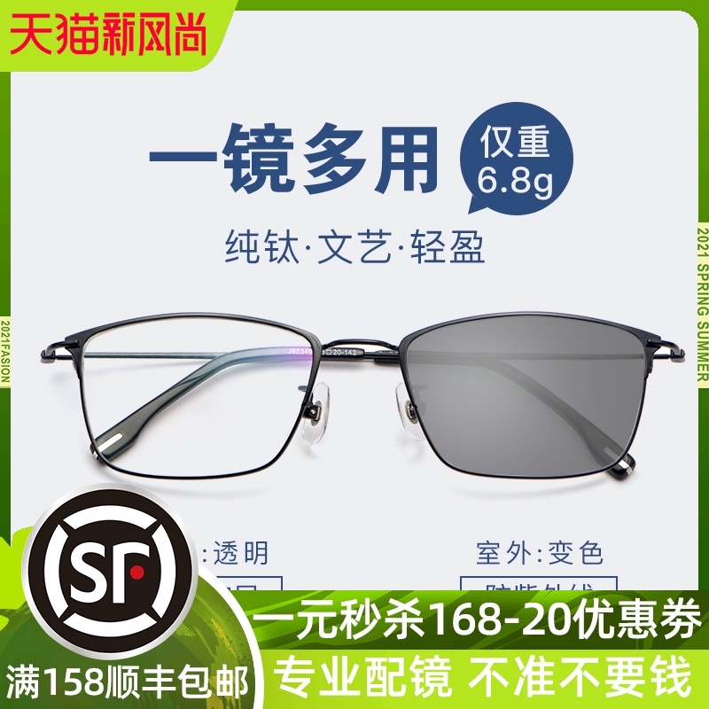 感光变色眼镜男近视镜潮纯钛近视眼镜女可配度数配眼镜近视加散光