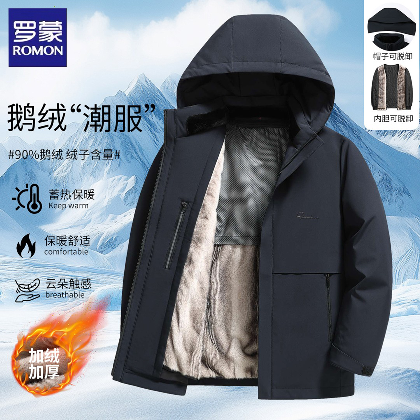 罗蒙90白鹅绒男士羽绒服男款冬季新款可脱卸内胆保暖御寒上衣外套