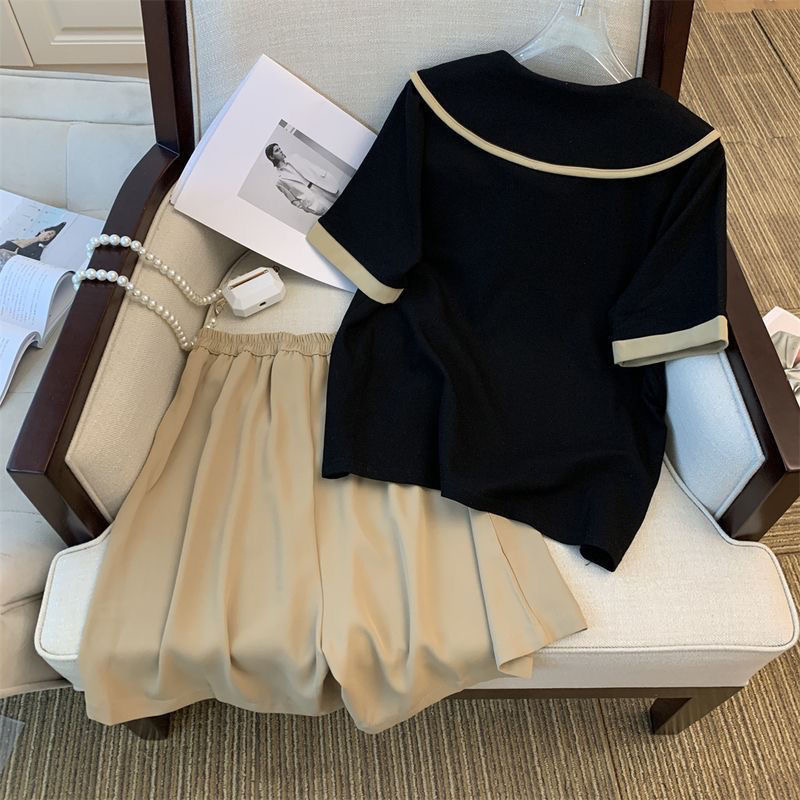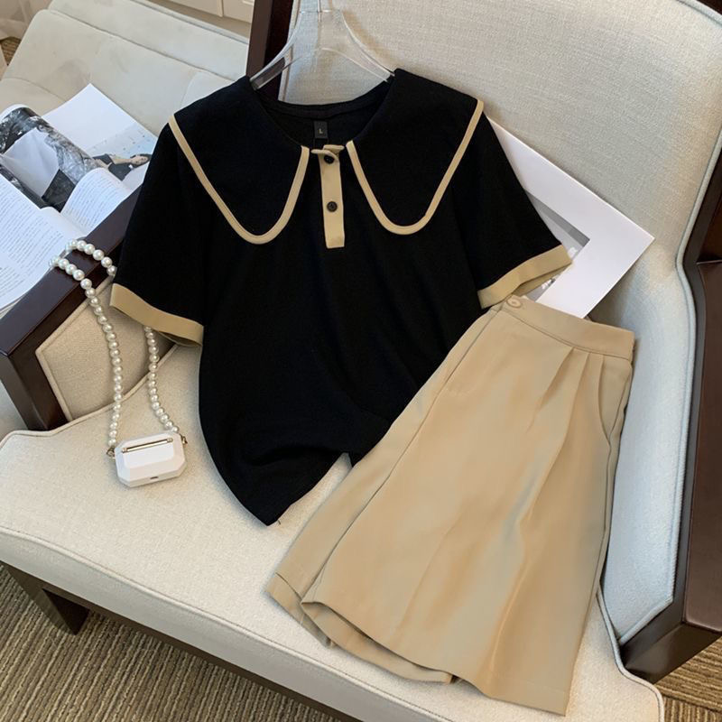 夏装海军领短袖T恤上衣短裤套装大码胖mm休闲气质宽松显瘦两件套