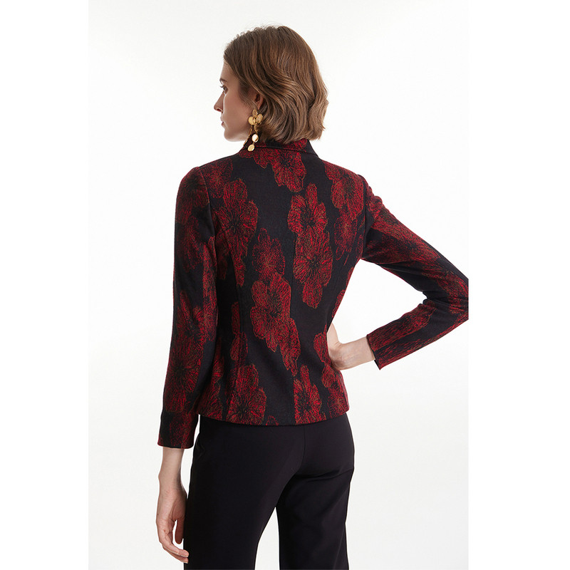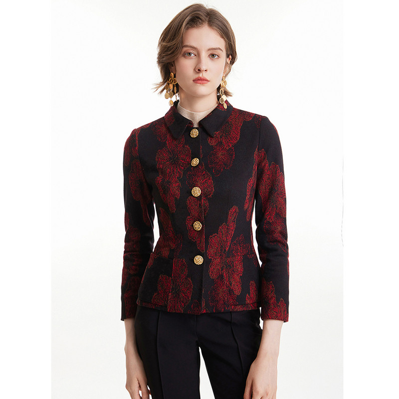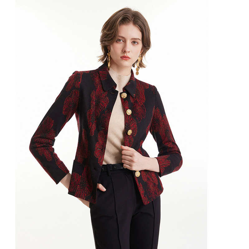 MORELINE沐兰优雅印花小翻领西装女2025年春季新款修身显瘦短外套