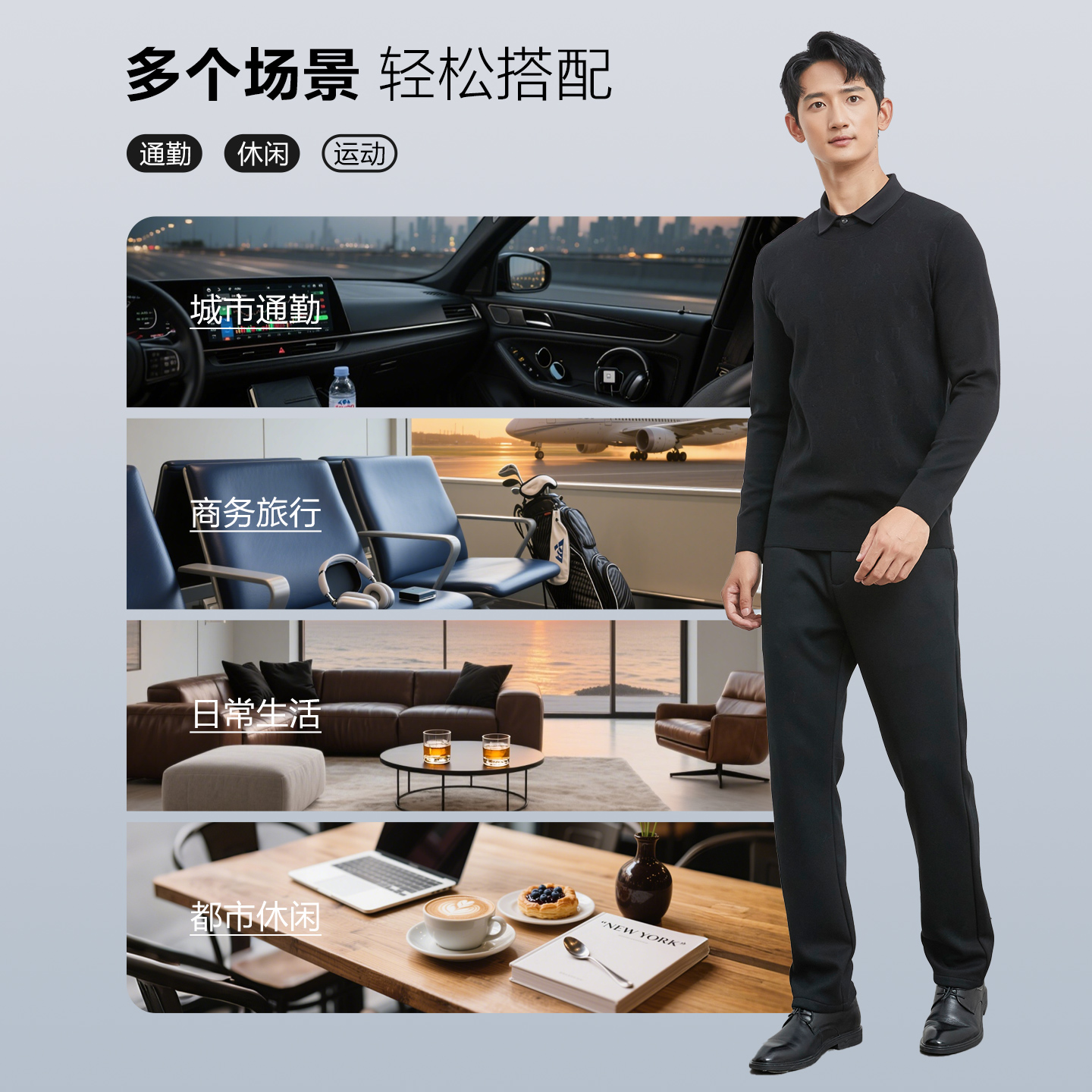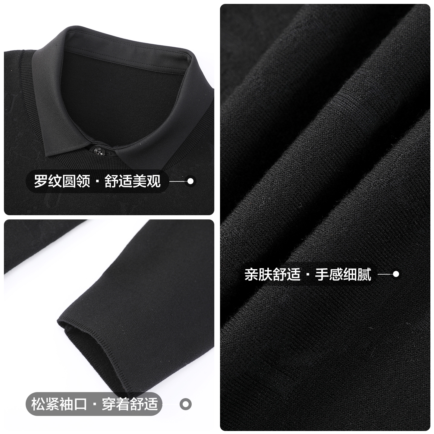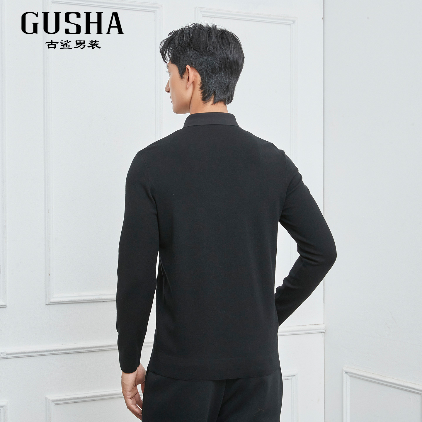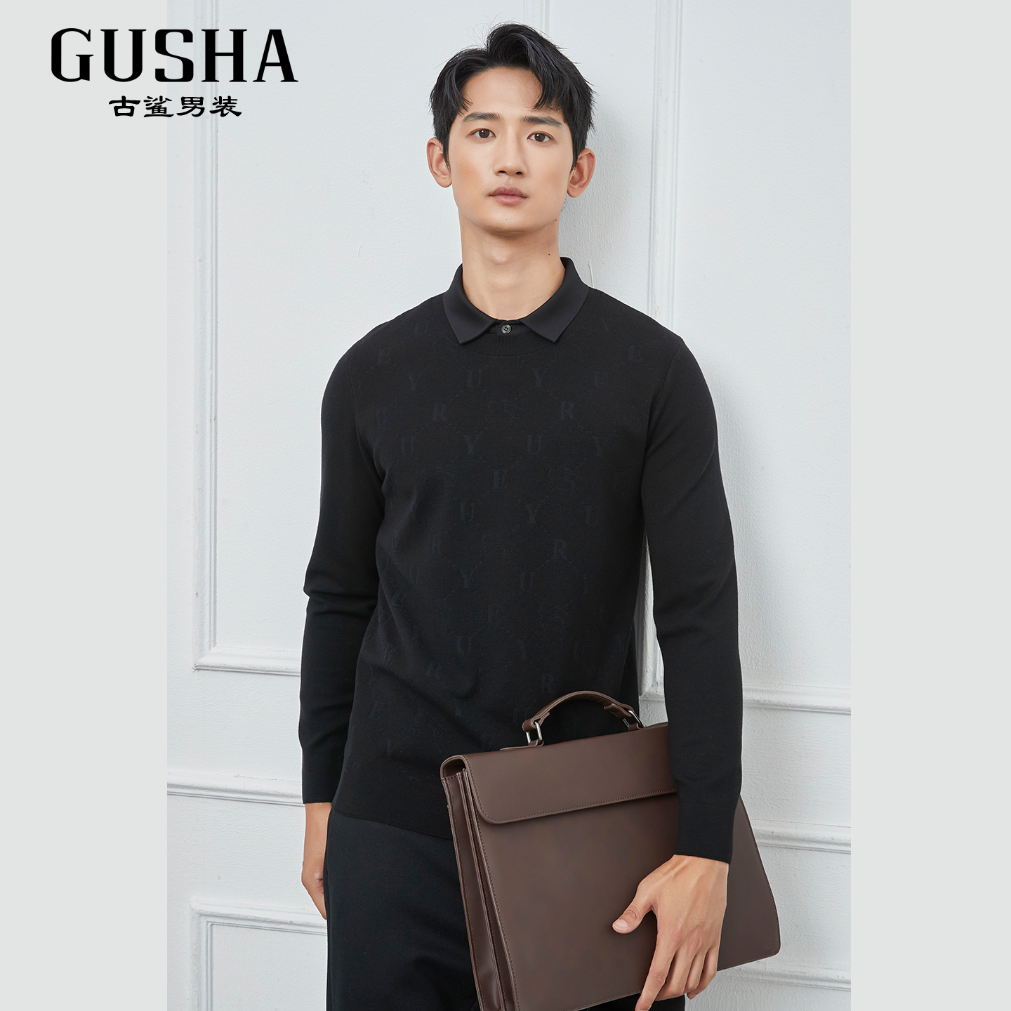 【桑蚕丝】古鲨黑色毛衣男假两件翻领商务通勤保暖针织衫2025秋新