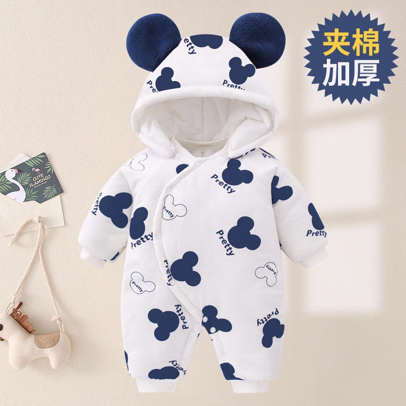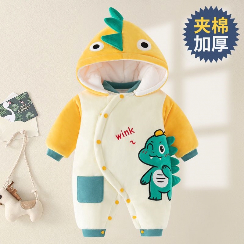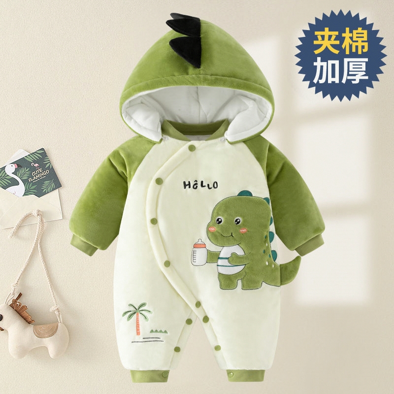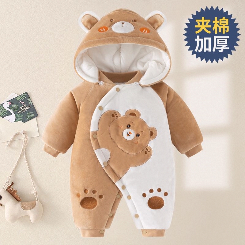 婴儿衣服冬装新生男女宝宝连体衣加绒厚夹棉满月哈衣冬季外出棉服