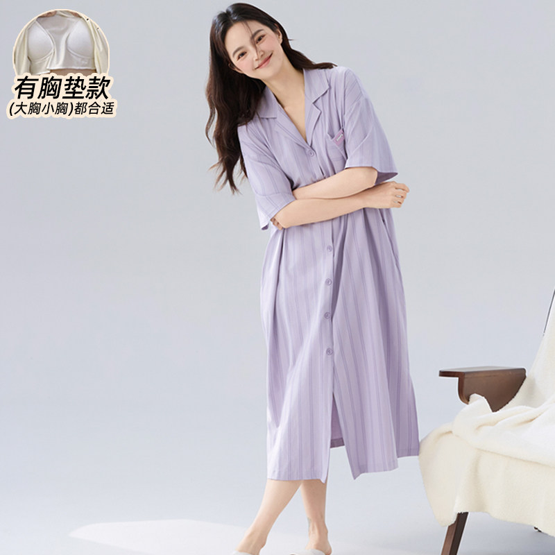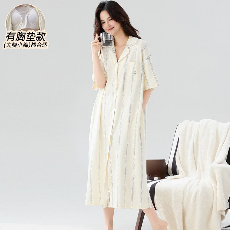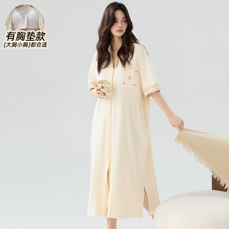 7A抗菌纯棉带胸垫睡裙女夏2025年新款短袖成熟御姐风睡衣长款开衫