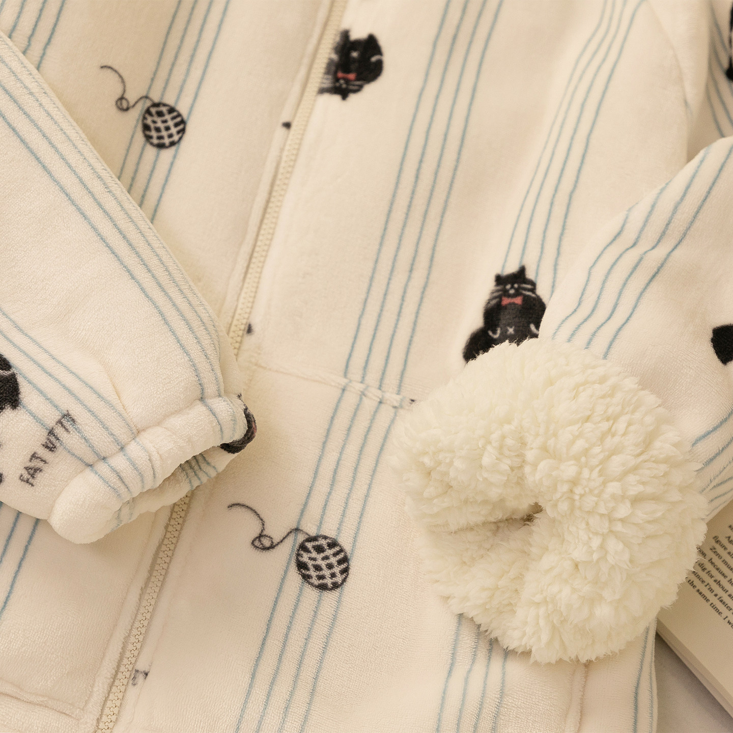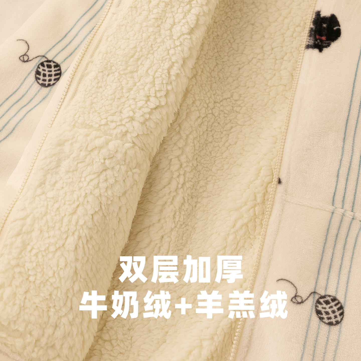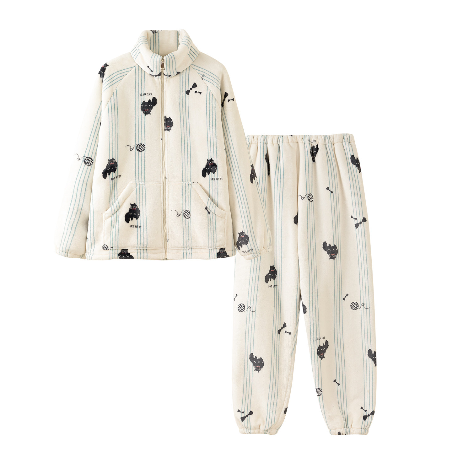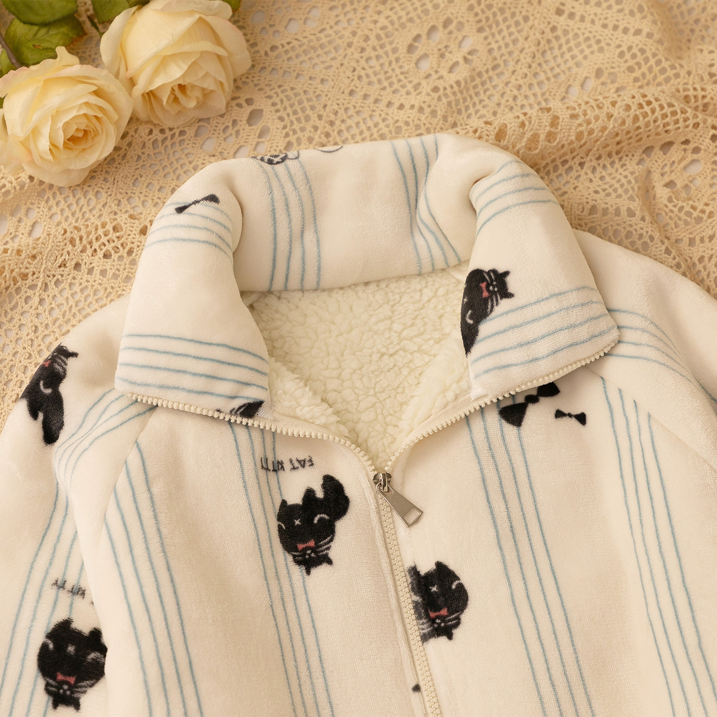【双层加厚】睡衣女冬季加绒加厚蓝调小黑猫保暖珊瑚绒家居服套装