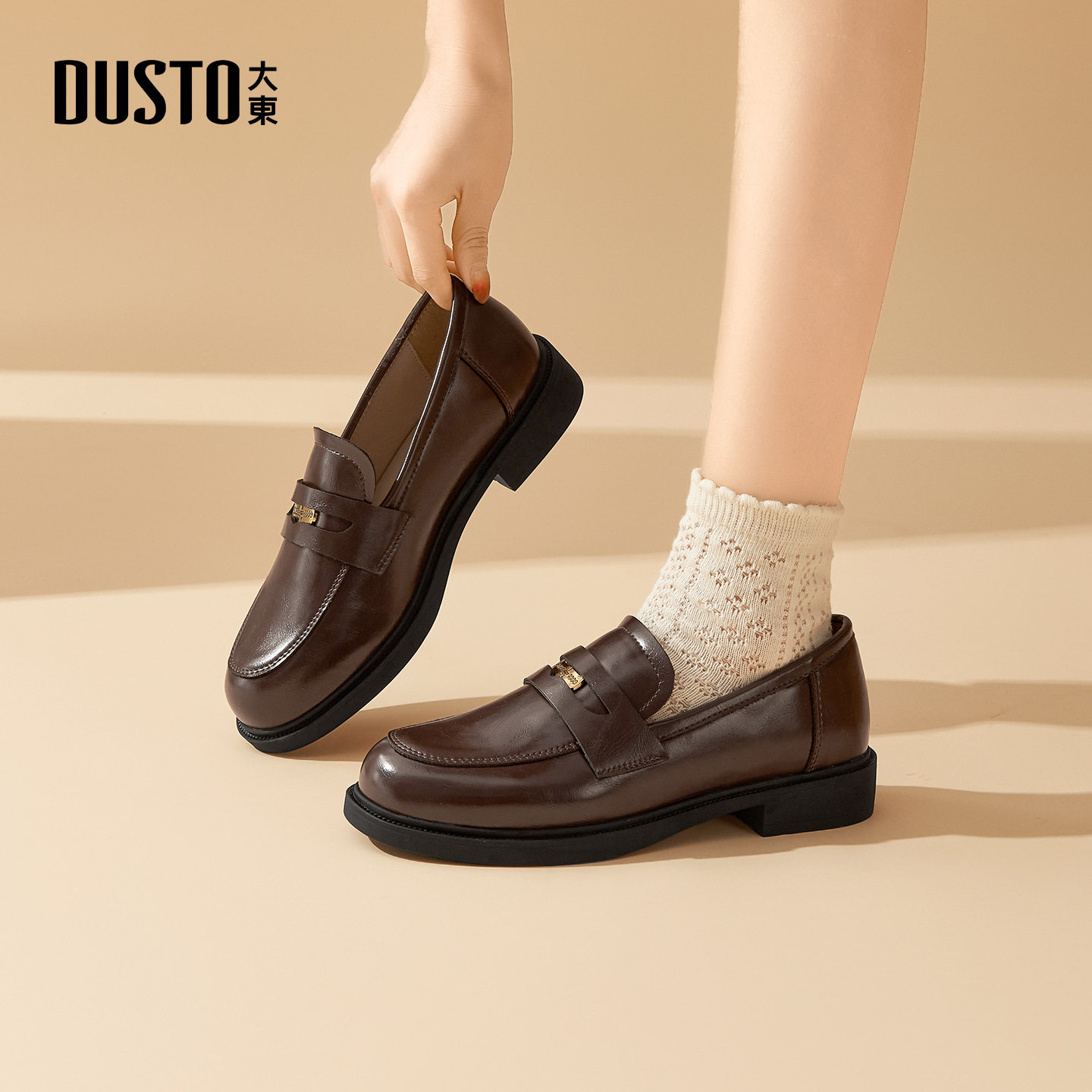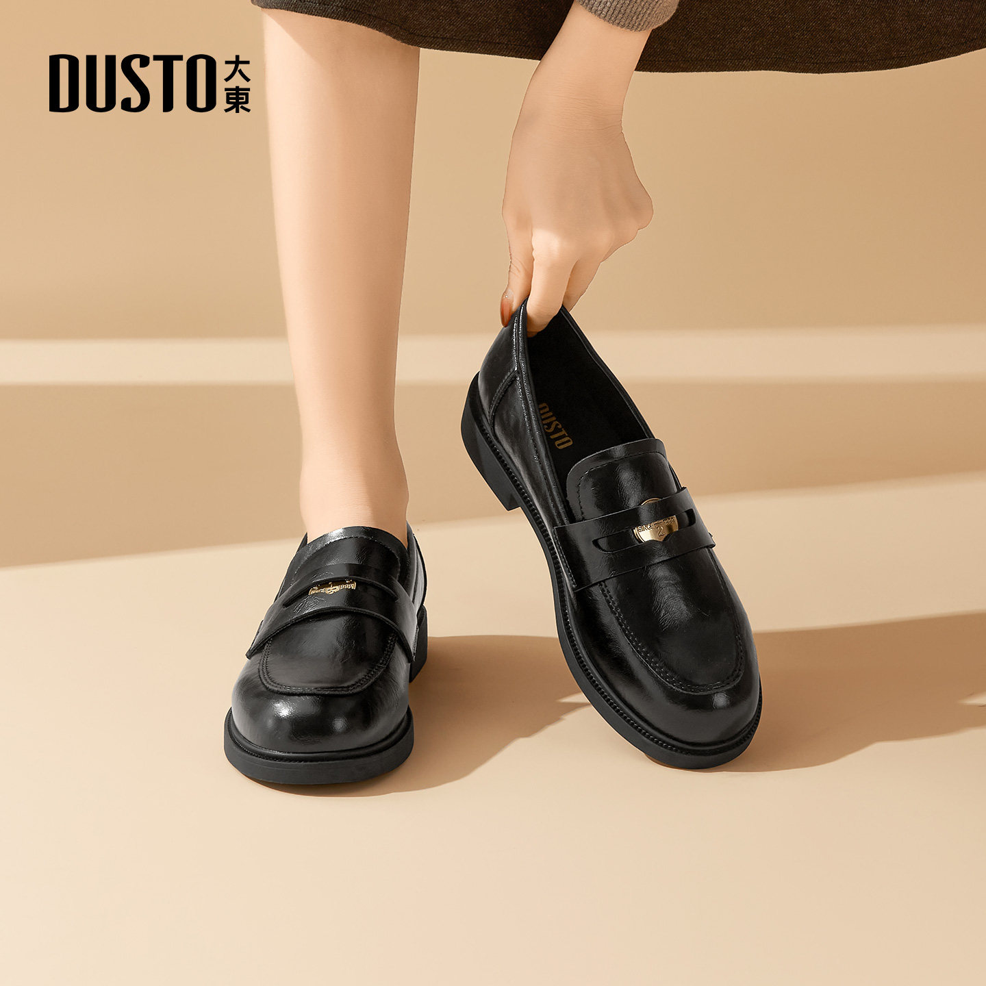 大东官方乐福鞋女2026新款春季气质漆皮百搭软底单鞋英伦风小皮鞋