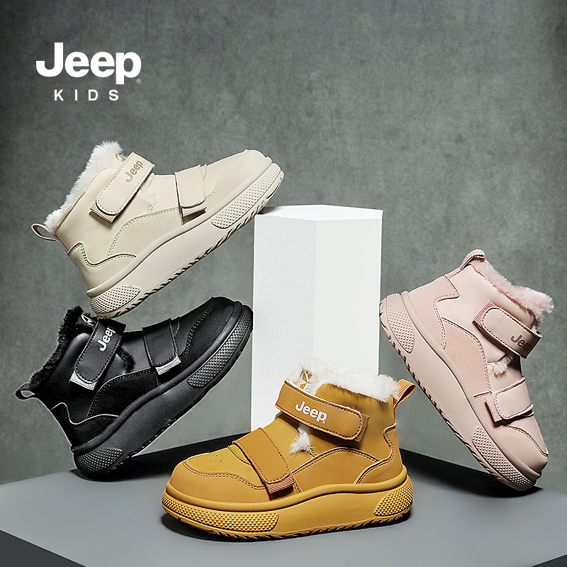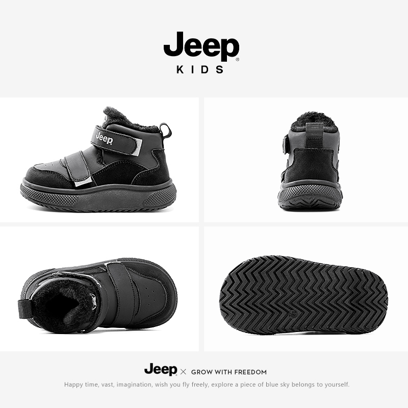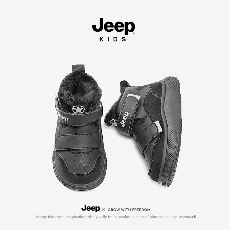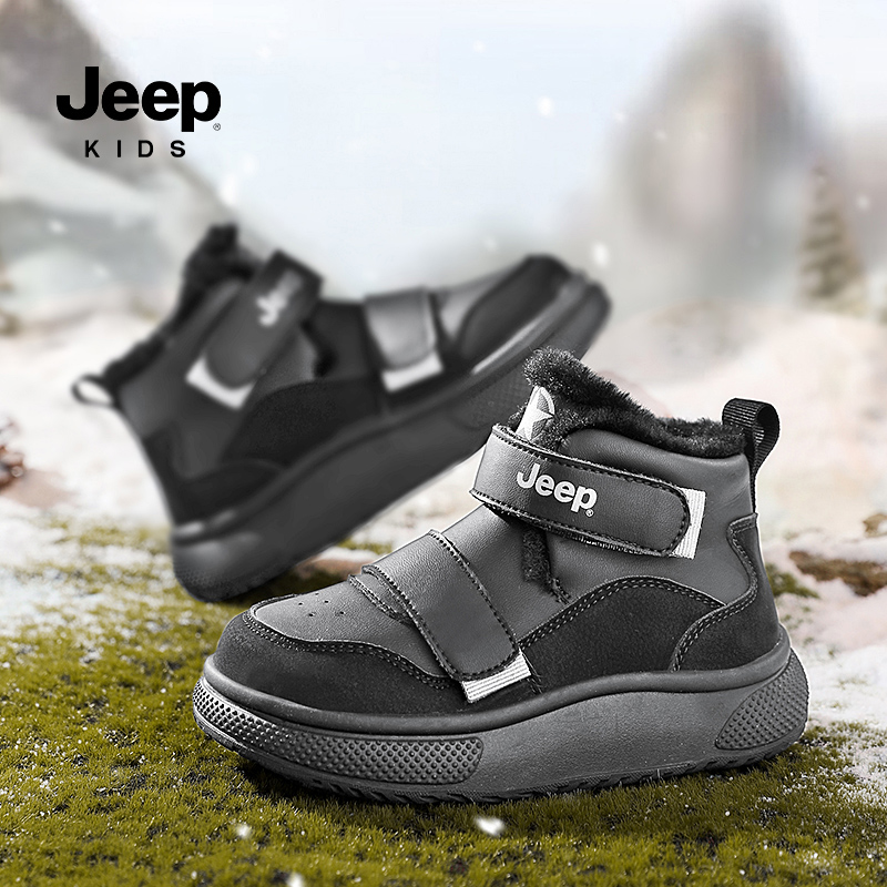 Jeep儿童大棉毛毛鞋加绒加厚冬季棉鞋2025新款男童鞋子女童雪地靴